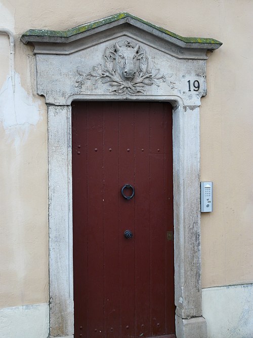 Les vestiges comprenant une arcade décorée de fresques, des piliers supportant cette arcade ainsi qu'une tourelle d'escalier sur cour avec son portail (cad. X 631, 632p, 635p, 636) : inscription par arrêté du 19 mai 1965