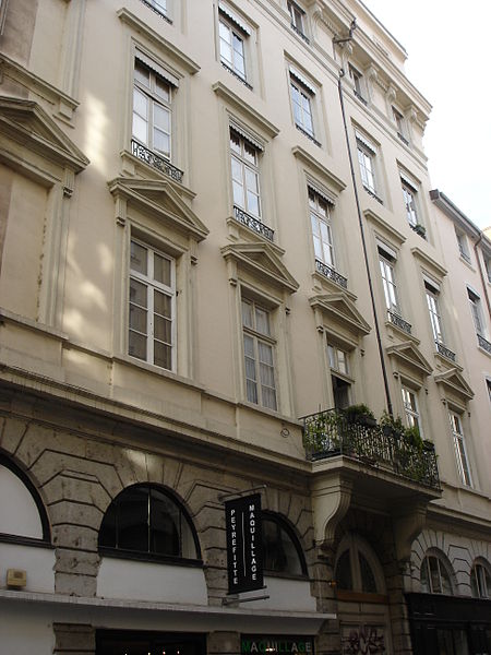 Façades et toitures donnant sur la rue du Plat et sur le quai Tilsitt, la cour dans sa totalité ainsi que son élévation, les deux escaliers avec leur rampe situés dans cette cour et l'allée cochère conduisant de la rue du Plat à la cour (cad. AO 5) : inscription par arrêté du 7 mars 2006
