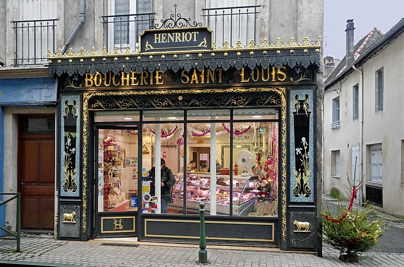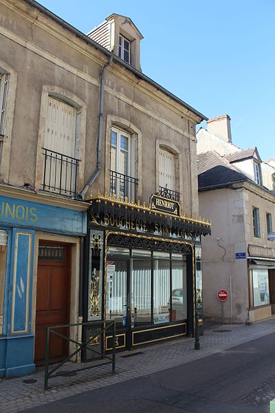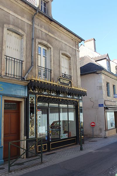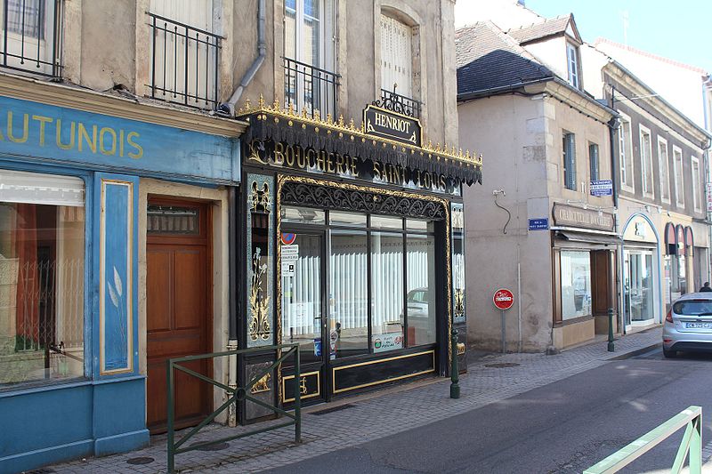 La boucherie Saint-Louis, située au 29 rue Guérin à Autun (Saône‑et‑Loire), présente une façade Art nouveau inscrite aux monuments historiques. L’établissement a été édifié entre la fin du XIXe siècle et le début du XXe siècle. Les fondeurs ont laissé une plaque portant l'inscription « Jules Mareschale et G. Petitdidier, 185 rue d'Allemagne Paris ». La façade a été inscrite au titre des monuments historiques le 4 août 1995 et la boucherie est également labellisée « Patrimoine du XXe siècle ». Typique de 1900, la devanture repose sur une structure en fonte composée de panneaux de marbre et de peintures fixées sous verre, aux couleurs noir, bleu et or. Elle est surmontée d'un lambrequin en zinc. Les peintures représentent des iris bleues, placées au‑dessus de sculptures de bovins moulées et dorées. On remarque encore quelques crochets en dent de loup qui servaient à suspendre la viande à l'extérieur.