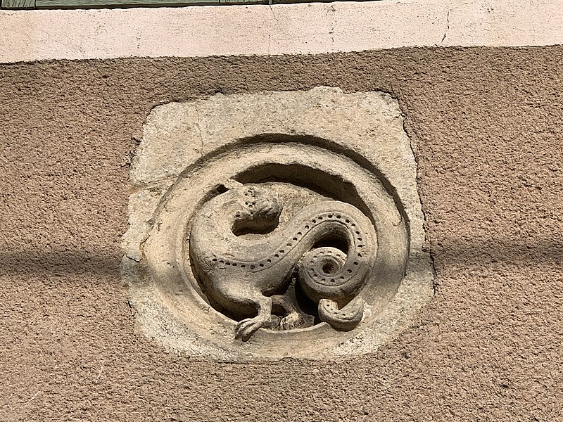 Le motif de pierre sculptée sur la façade : inscription par arrêté du 3 mars 1941