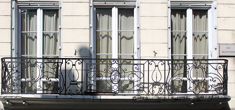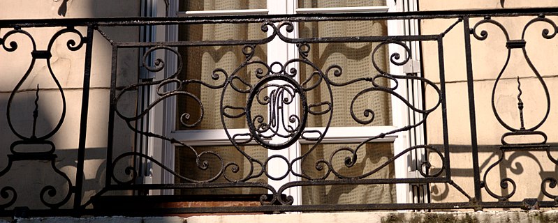 Balcon en fer forgé du premier étage (cad. 8 189) : inscription par arrêté du 5 mars 1962