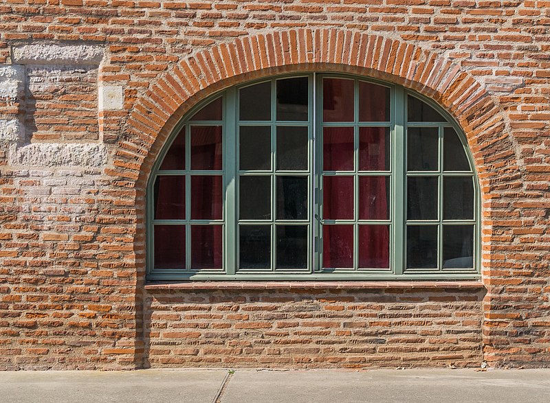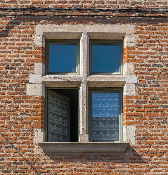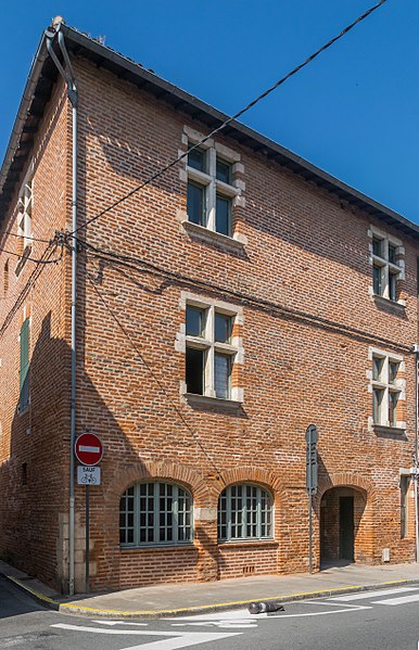 Immeuble en briques, composé d'un rez-de-chaussée et de deux étages. La façade sur rue est percée de nombreuses ouvertures irrégulières, réalisées à différentes époques, tandis que les étages présentent des fenêtres à meneaux.
