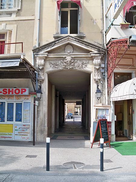 Le café, dont la date de création (1899) est inscrite sur le bâtiment, est lié au percement du passage Vidau. Charles Vidau dirigeait à la fin du XIXe siècle une entreprise de construction qui a réalisé à Cavaillon ce café, le passage qui le longe, la rue Liffran, le bâtiment du Crédit Lyonnais et sa maison sur le cours Bournissac, encore occupée par ses descendants. Il travaillait avec ses fils, qui exécutaient les décors sculptés des façades, tandis que les mosaïques étaient réalisées par des maçons italiens. Cette association a pris fin à la veille de la Première Guerre mondiale. La salle de restaurant du premier étage était à l'origine un cercle de réunion. Les quatre tableaux ont été restaurés récemment, les panneaux de gypserie repeints et la porte sculptée du passage nettoyée en 1986. Unique à Cavaillon par la profusion et l'état de conservation de son décor, ce café est le dernier vestige de l'âge d'or des cafés de la ville, entre 1860 et la Seconde Guerre mondiale. Il présente un intérêt à la fois pour son décor exceptionnel et comme témoignage des travaux d'urbanisme menés par Charles Vidau à la fin du XIXe siècle. Le mobilier actuel est récent mais conçu dans le style du café, avec des tables de marbre, des chaises en rotin et un bar en bois sombre. Bien qu'il n'en subsiste aucun vestige matériel, des témoignages oraux évoquent un petit théâtre accolé au café dont l'entrée se ferait probablement par la porte sculptée du passage.