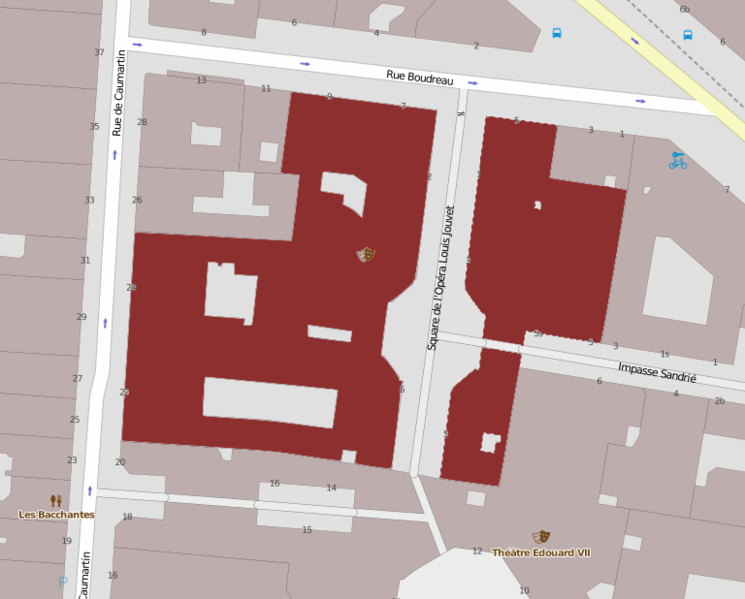 Situé dans le 9e arrondissement de Paris, le square de l'Opéra-Louis-Jouvet est une voie privée qui relie le 5, rue Boudreau au 10 bis, rue Édouard-VII. Le quartier est desservi par les lignes 3, 7 et 8 (station Opéra), 8, 12 et 14 (station Madeleine) et par la ligne A du RER (gare d'Auber). À la fin du XIXe siècle, le Crédit Foncier acquiert le terrain, abat les restes de l'Eden-Théâtre et, en 1896, crée la voie alors nommée « square de l'Opéra », percée à l'emplacement de l'Eden et du Grand Théâtre. Pensé pour devenir le rendez-vous du Tout-Paris mondain, cet ensemble attirait un public bourgeois et le rez-de-chaussée des immeubles était occupé par des boutiques de luxe. Il prend la dénomination « square de l'Opéra‑Louis‑Jouvet » le 6 mai 1955, en référence à la proximité de l'Opéra de Paris et en mémoire du comédien Louis Jouvet (1887-1951), qui fut directeur du théâtre de l'Athénée dont l'entrée donne sur cette voie. Le square est orné de la statue Le Poète chevauchant Pégase d'Alexandre Falguière et accueille le théâtre de l'Athénée. Les immeubles des nos 1, 3, 5 et 6, construits en 1896, forment un ensemble inscrit au titre des monuments historiques en 2005.