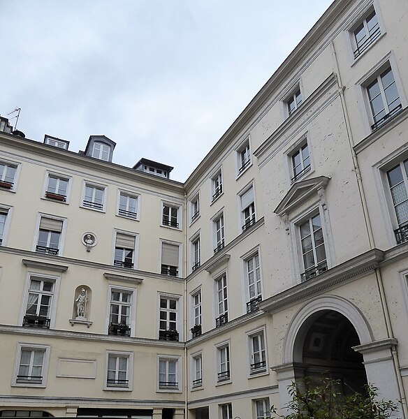 Façades sur rue et sur cour avec leurs toitures, passage et cage d'escalier, sol de la cour et décors de l'appartement du premier étage du n° 13 ; façades sur rue et sur cour avec leurs toitures, passage cocher avec sa porte métallique, sol de la cour du n° 15 ; façades sur rue et sur cour avec leurs toitures, passage et cage d'escalier, sol de la cour du n° 17 (cad. 09 : 03 AW 64, 116, 63) : inscription par arrêté du 22 mars 1990