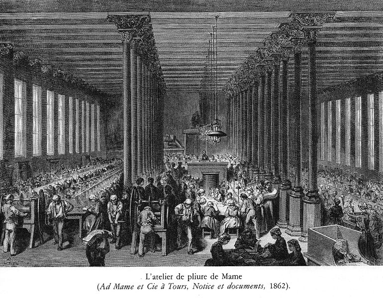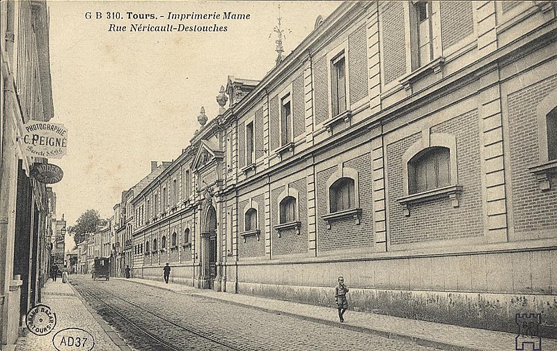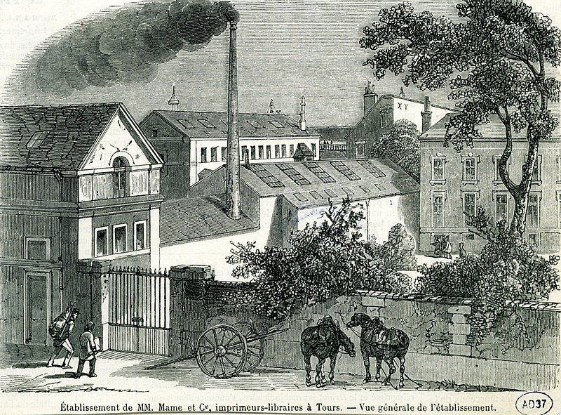 L'imprimerie Mame, implantée à Tours depuis la fin du XVIIIe siècle, trouve son origine dans l'activité familiale initiée par Pierre-Charles et reprise par son fils Armand en 1796. Au XIXe siècle, l'entreprise s'étend dans le Vieux-Tours et connaît un important développement industriel, atteignant en 1866 un chiffre d'affaires de 3,50 millions de francs-or, 1 500 ouvriers et l'emploi de trente machines à vapeur. La maison Mame reste dirigée par plusieurs membres de la famille, dont Ernest Mame (1805-1883), Alfred Mame (1811-1893) et leurs descendants Paul (1833-1903), Armand (1864-1926) et Alfred (1909-1994). L'usine historique est entièrement détruite lors de l'arrivée des Allemands le 19 juin 1940, puis les ateliers et tout le stock de livres sont à nouveau anéantis par des bombardements alliés le 20 mai 1944. Après la guerre, l'imprimerie s'installe provisoirement près de la gare de Tours. À partir de 1950 une nouvelle usine est édifiée sur un terrain de 3,5 hectares en bordure de Loire ; sa construction, menée entre 1950 et 1953, est conduite par l'architecte Bernard Zehrfuss, associé à Jean Drieu la Rochelle et Jean Marconnet, avec la collaboration de l'ingénieur-architecte Jean Prouvé et du peintre Edgar Pillet. La maîtrise d'œuvre technique associe également les ingénieurs Tramond et Barral, l'entrepreneur J. Guillemot et la supervision de la société des Grands Travaux de l'Est. Conçue dans l'esprit de la Synthèse des Arts, l'imprimerie adopte une architecture rigoureuse, orthogonale, modulaire et fonctionnelle, comprenant une tour pour les bureaux et un volume bas pour les ateliers reliés par une passerelle. Les ateliers, organisés en ossature de poteaux et poutres en béton, forment un vaste volume qui a nécessité un éclairage zénithal maîtrisé. Pour cela Prouvé a mis au point et installé 672 sheds préfabriqués en aluminium, courbes et autoportants, posés sur une structure métallique : une innovation utilisée ici pour la première fois et présentée comme une première en Europe, qui assure l'éclairage zénithal des ateliers. Prouvé a aussi réalisé quatre pavillons en aluminium sur la toiture-terrasse de la tour administrative, équipés de baies vitrées et de hublots colorés ; l'un d'eux, remarquable, accueillait la salle de réunion dont la toiture prend la forme d'une coque débordante. Le peintre Edgar Pillet a décoré les cloisons intérieures par des fresques abstraites et a dessiné le mobilier de bureau en tubes métalliques, créé spécifiquement pour l'usine. Certains éléments initiaux, comme les peintures murales de Pillet, ont disparu à la suite d'aménagements internes successifs, qui ont notamment doublé et agrandi les ateliers et modifié les cloisonnements. D'autres composants portent des mentions techniques ou d'origine : une tête de Gutenberg orne le fronton au‑dessus de la porte d'entrée, des conteneurs des ateliers proviennent de Gantois et les grilles entourant l'usine ont été réalisées à Saint‑Dié dans les Vosges. L'ensemble du projet a reçu en 1954 le grand prix d'architecture industrielle de Milan. L'agence Marconnet à Tours a assuré deux extensions du bâtiment en 1964. La partie originelle de l'imprimerie est inscrite au titre des monuments historiques depuis le 23 mars 2000. En 1980 la famille cède l'entreprise à Desclée de Brouwer, progressivement reprise par le groupe Média Participations ; des difficultés judiciaires conduisent à l'abandon des installations de Tours à partir de 2010. Après une réhabilitation, le site a été reconverti et inauguré le 6 octobre 2016 comme « Cité de la création et de l'innovation » (site Mame).