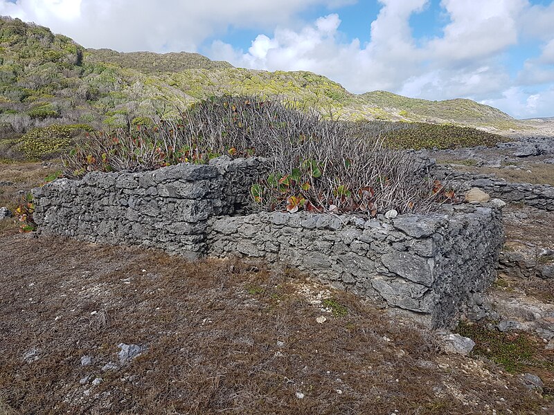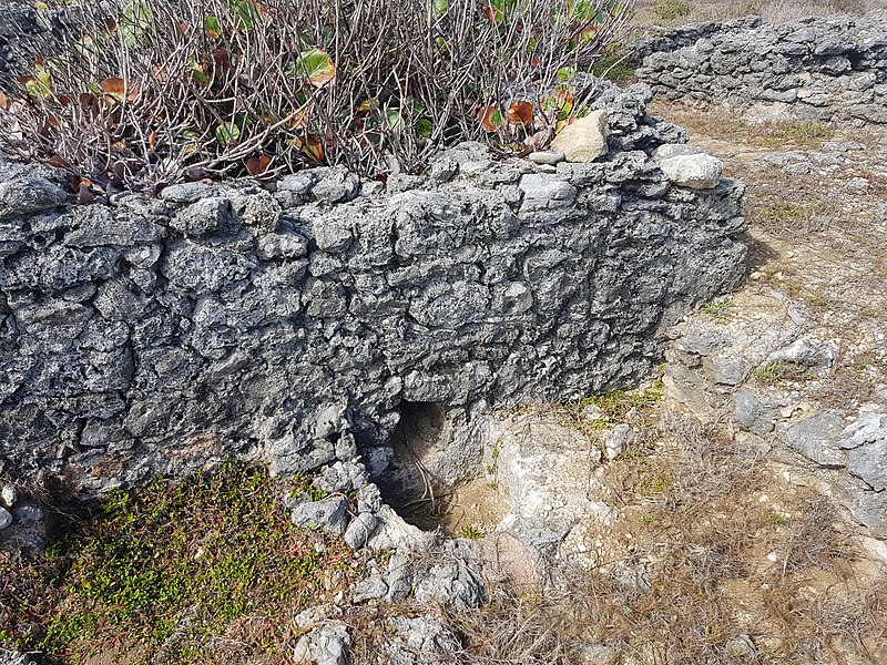 Le bâtiment est construit en pierres de calcaire (madrépore) liées au mortier de chaux, l'intérieur étant enduit d'un mortier de tuileau lissé à la chaux. Il comprend deux séries parallèles de cuves rectangulaires d'environ 3,5 m de côté, disposées face à face, chaque série associant une trempoire — la « pourriture » — destinée à la fermentation des feuilles, une batterie où l'indigo était battu et oxydé pour prendre sa couleur, et un reposoir compartimenté pour le décantage, pourvu d'un petit bassin. Un puits sommaire creusé dans le karst se trouve à l'extrémité tournée vers l'océan. Des deux reposoirs, seul celui situé à l'est est en assez bon état et se distingue par une complexité inattendue liée à plusieurs murs internes ; les deux trempoires sont bien conservées. Un bassin isolé, peut-être destiné à l'égouttage de la pâte d'indigo, a été découvert ; des gravures anciennes montrent au même emplacement un râtelier destiné à suspendre des sacs de toile pour l'égouttage. La disposition en deux séries permettait une production continue, avec un nettoyage des installations entre chaque cycle.