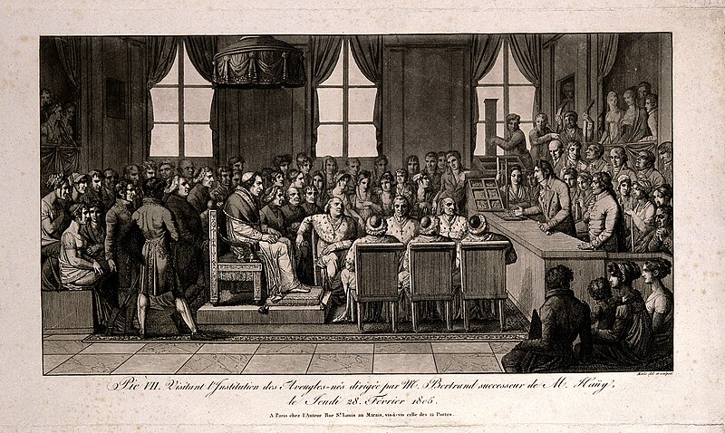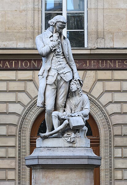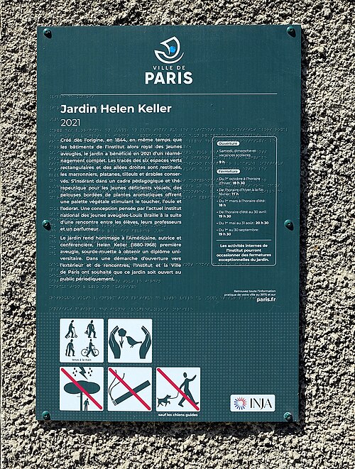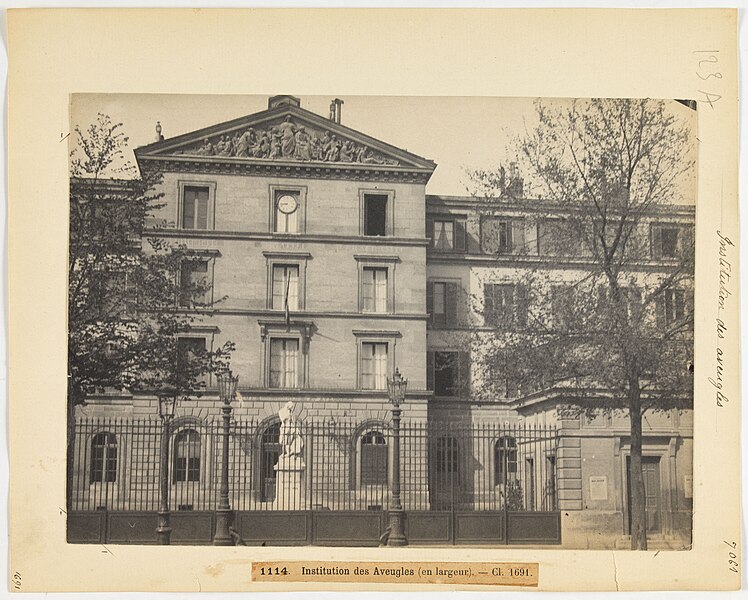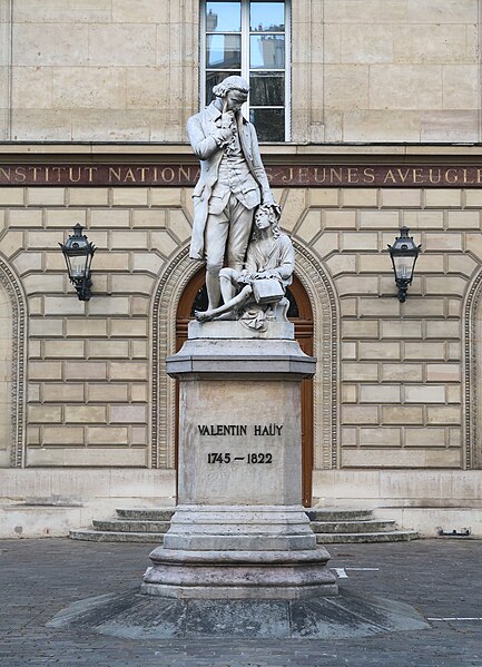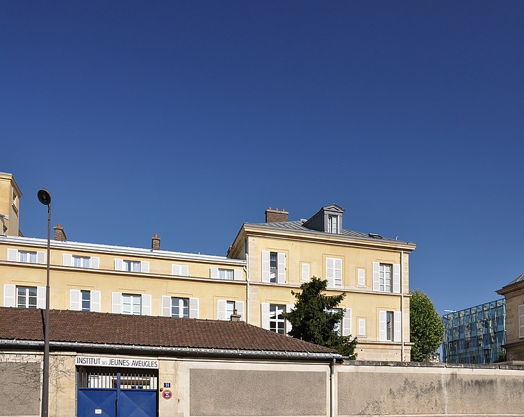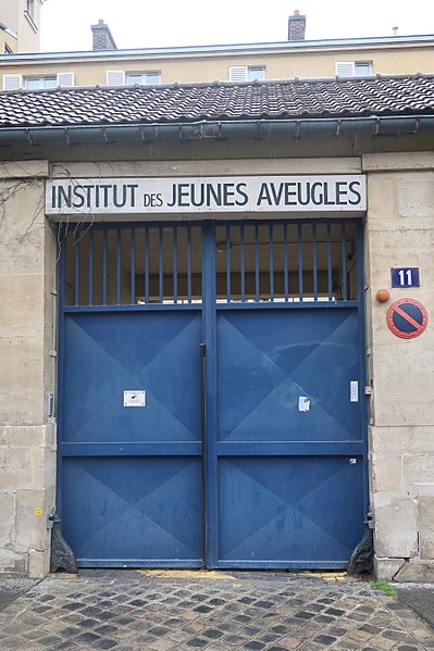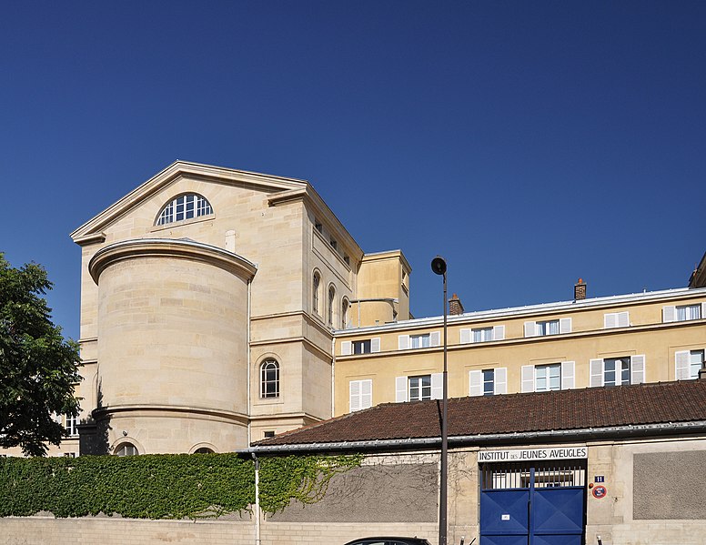 L'Institut national des jeunes aveugles (INJA) est un institut médico-social et d'éducation sensorielle situé à Paris, dédié à l'accueil et à la formation des jeunes aveugles pour favoriser leur insertion dans la vie active. Les peintures murales de la chapelle ont été réalisées par Henri Lehman. À la fin du XVIIIe siècle, les sociétés européennes commencèrent à s'intéresser à l'éducation des aveugles, jusque-là considérés incapables de lire ou d'écrire. En 1784, Valentin Haüy apprit à lire à François Lesueur avec le soutien de la Société philanthropique, puis il ouvrit à ses frais une école rue Coquillière en 1785, date retenue comme fondation de l'INJA. Face aux progrès des élèves, la Société philanthropique loua un bâtiment rue Notre-Dame-des-Victoires en 1786 et y établit l'Institution des Enfants Aveugles placée sous la direction de Valentin Haüy. Haüy présenta ses méthodes à Louis XVI le 26 décembre 1786 et obtint un financement royal; son école fut alors renommée Institution royale des jeunes aveugles. En 1791, l'établissement devint l'Institution nationale des jeunes aveugles et fut transféré dans le couvent des Célestins puis dans la maison des filles de Sainte Catherine. De 1800 à 1815, il fut rattaché à l'hôpital des Quinze-Vingts sous le nom d'Institut national des aveugles travailleurs. Sous la Restauration, l'établissement reprit le nom d'Institution royale des jeunes aveugles et s'installa au séminaire Saint-Firmin. En 1844, il s'installa définitivement au 56 boulevard des Invalides. L'INJA propose un enseignement conforme au programme de l'Éducation nationale, des classes primaires à la terminale, et forme notamment au métier d'accordeur de piano. Le bâtiment, conçu par l'architecte Pierre Philippon, fut construit de 1839 à 1844. En face de l'entrée se trouvent une statue de Valentin Haüy accompagnée d'un enfant assis et un buste de Louis Braille. La salle André Marchal sert régulièrement de décor de film. Les façades, les toitures et le décor intérieur de la chapelle sont classés au titre des monuments historiques depuis le 21 décembre 1984. Son jardin, portant le nom d'Helen Keller, est ouvert au public depuis 2023 et accessible depuis le 88 bis rue de Sèvres; une plaque à l'entrée porte un texte également en braille. Parmi les principaux directeurs et enseignants figurent Alexandre-René Pignier (1785-1874), Pierre-Armand Dufau (1840-1855), Arthur Coquard (1891-1899), Maurice de La Sizeranne (professeur de musique et fondateur de l'Association Valentin Haüy en 1889), Joseph Guadet (chef de l'enseignement de 1840 à 1871) et Louis Vidal (professeur de modelage, 1888). L'école a formé de nombreux musiciens et pédagogues célèbres, parmi lesquels Louis Braille, Joseph Bucciali, Gabriel Gauthier, Marius Gueit, Jean Langlais, Louis Lebel, Gaston Litaize, André Marchal, Adolphe Marty, Antoine Reboulot, Maurice Simon, Louis Thiry, Henri Victor Tournaillon, Louis Vierne et Jean Wallet. D'autres anciens élèves notables comprennent Gilbert Montagné, auteur, compositeur et interprète; Claude Montal, accordeur et facteur de piano décoré de la Légion d'honneur (1851); Jean-Baptiste Penjon, mathématicien et premier aveugle licencié de l'université (1821); et Raymond Thiberge, pédagogue créateur d'instituts pédagogiques.