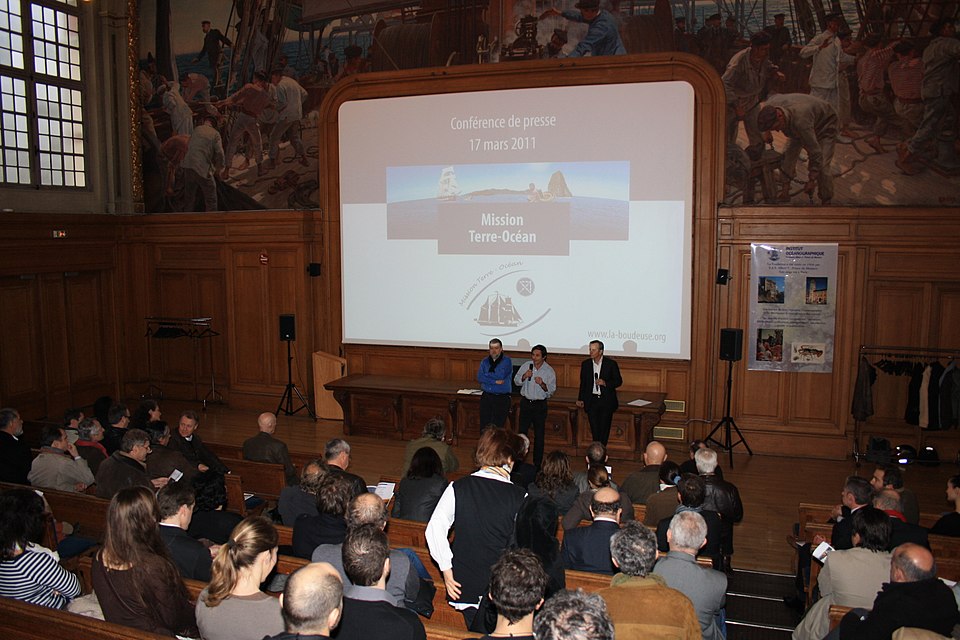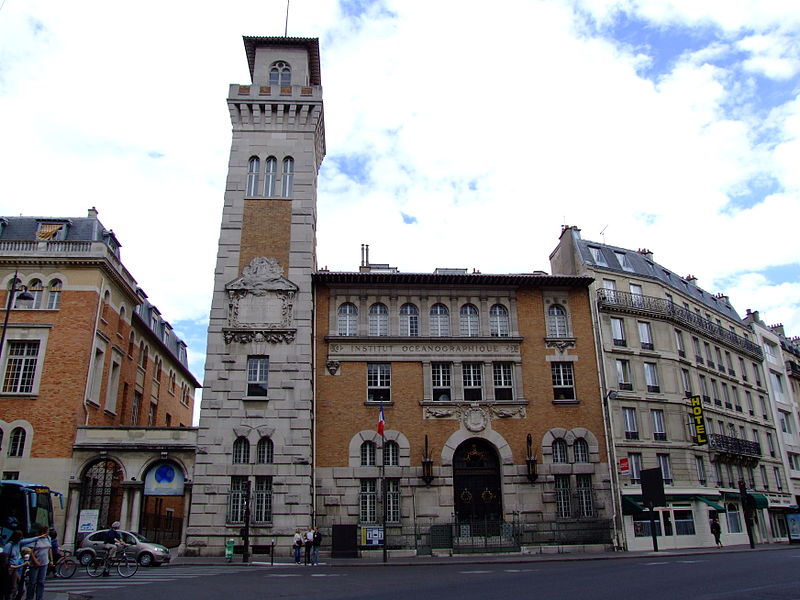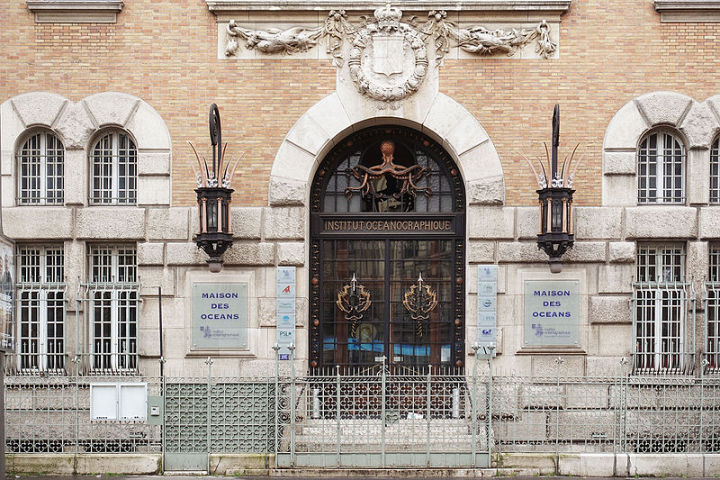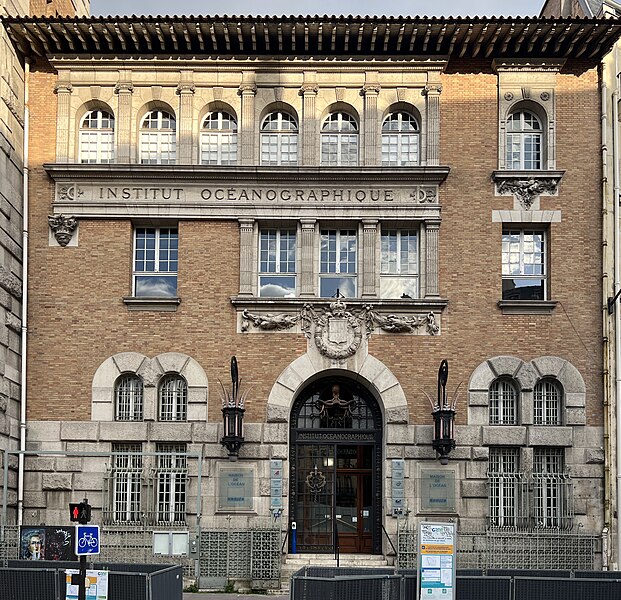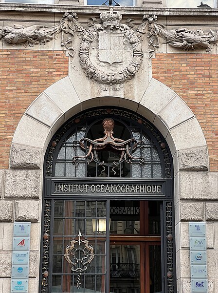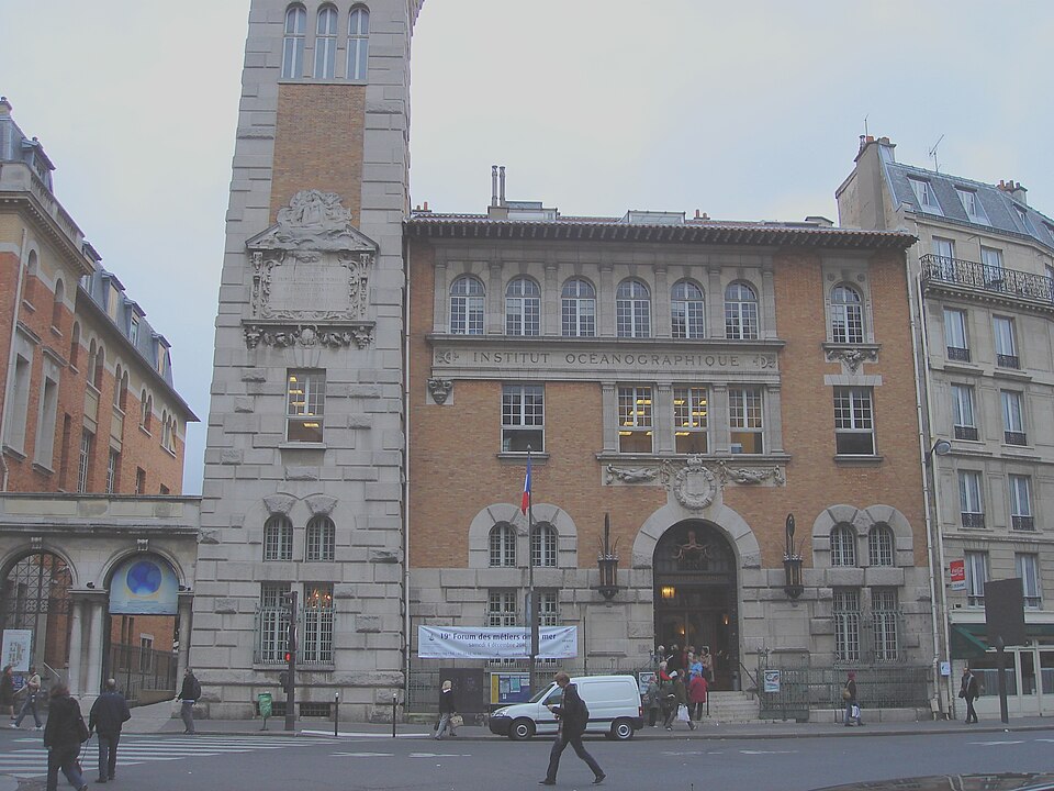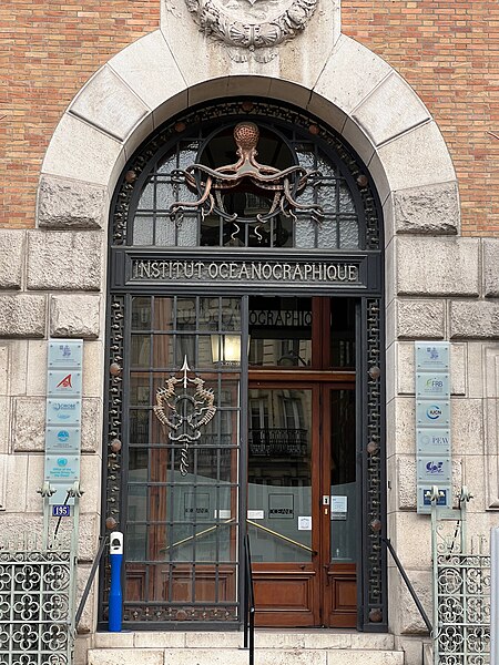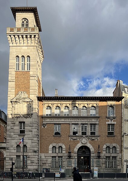 L'Institut océanographique a été fondé en 1906 par Albert Ier, prince de Monaco, et son bâtiment parisien a été élevé entre 1908 et 1911 par l'architecte Henri‑Paul Nénot. L'institution, régie par la Fondation Albert‑Ier comme le musée océanographique de Monaco, a porté successivement les noms d'Institut océanographique de Paris, de Centre de la mer et des eaux, et a été surnommée Maison de l'Océan lors de son centenaire en 2011. Albert Ier, pionnier de l'océanographie, souhaitait en être le « propagateur » ; après chacune de ses campagnes il présentait ses résultats dans les sociétés savantes et auprès du public, et il organisa dès 1903 des cycles de cours au Conservatoire national des arts et métiers qui conduisirent à la création d'un centre d'études et d'enseignement à Paris. L'édifice se situe dans le 5e arrondissement, au croisement des rues Saint‑Jacques et Gay‑Lussac, au sein du « campus Curie », sur un terrain d'environ 1 000 m2 cédé au prince par l'université de Paris. Conçu par Henri‑Paul Nénot, le bâtiment affiche un style de palais de la Renaissance italienne en brique et pierre, flanqué d'une haute tour carrée et relié à l'Institut de géographie voisin par une double arche symbolique intitulée « la Terre et l'Océan ». L'inauguration officielle eut lieu le 23 janvier 1911 en présence du prince Albert Ier et du président de la République Armand Fallières. L'édifice est inscrit au titre des monuments historiques depuis un arrêté du 4 novembre 2004, modifié par un arrêté d'inscription du 15 octobre 2024. Il comprend deux amphithéâtres, des laboratoires correspondant à trois cursus (océanographie physique, biologie marine et physiologie de la biodiversité marine), une bibliothèque‑médiathèque spécialisée, des viviers souterrains et des logements de fonction. Les décors de la façade illustrent la vocation de diffusion des connaissances marines : crabes, méduses et hippocampes ornent les parements, et un poulpe figure sur la porte en fer forgé. Le grand amphithéâtre est décoré de quatre fresques réalisées par Louis Tinayre et Alexandre Jean‑Baptiste Brun, Tinayre traitant les personnages et Brun, peintre de la marine, la mer, le pont et les gréements. La vaste fresque dite « Pont de la Princesse Alice » entoure la baie qui sépare la grande salle de la petite et représente des scènes typiques d'une campagne océanographique du début du XXe siècle, notamment la remontée d'un globicéphale et la mise à l'eau d'une nasse triédique. D'autres panneaux montrent le « retour du chalut », avec l'équipage et les scientifiques s'affairant autour d'un filet, ainsi que le prince travaillant avec des chercheurs dans un laboratoire du navire Princesse Alice. Une grande scène du mur du fond représente le prince à la proue d'une baleinière lors du harponnage d'un cétacé. Fidèle à sa vocation, l'Institut propose au public des conférences, des séminaires, des publications et une bibliothèque spécialisée ; à la fin du XXe siècle et au début du XXIe, des subventions ont permis d'aménager au sous‑sol des aquariums, expositions et dispositifs de médiation scientifique. L'Institut fut le siège de la Commission internationale pour l'exploration scientifique de la Méditerranée (CIESM) de 1925 à 1964 et accueille aujourd'hui l'antenne française de cette commission, dont le siège se situe au musée océanographique de Monaco. L'établissement est administré par un conseil d'administration dont le président en 2020 était Philippe Taquet ; le prince souverain de Monaco en est président d'honneur de droit et Albert II en est actuellement le président d'honneur. Le directeur général mentionné est Robert Calcagno et, en 2020, le conseil scientifique était présidé par Philippe Cury. L'Institut est situé au 195, rue Saint‑Jacques dans le Quartier latin et est desservi par plusieurs lignes d'autobus et par la gare du Luxembourg du RER B.