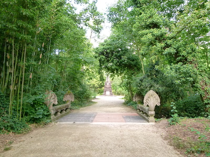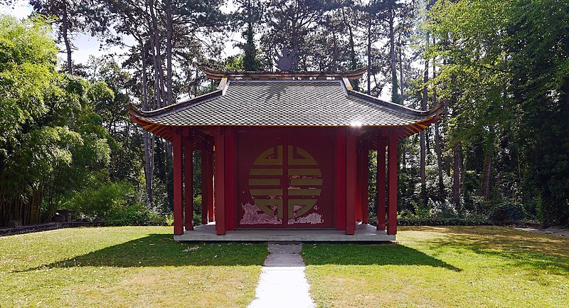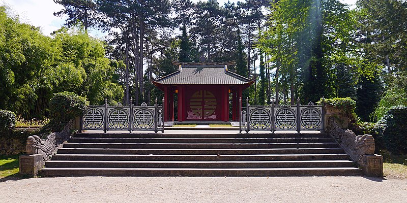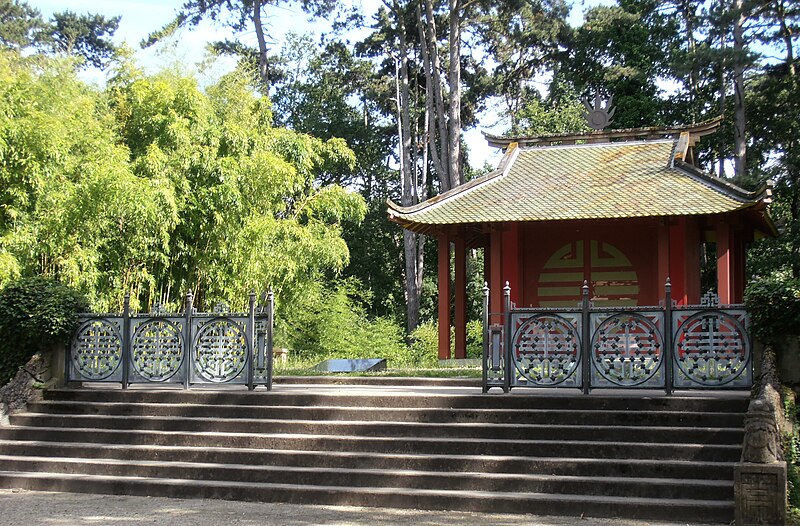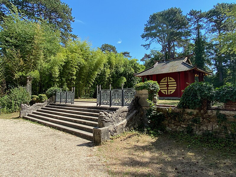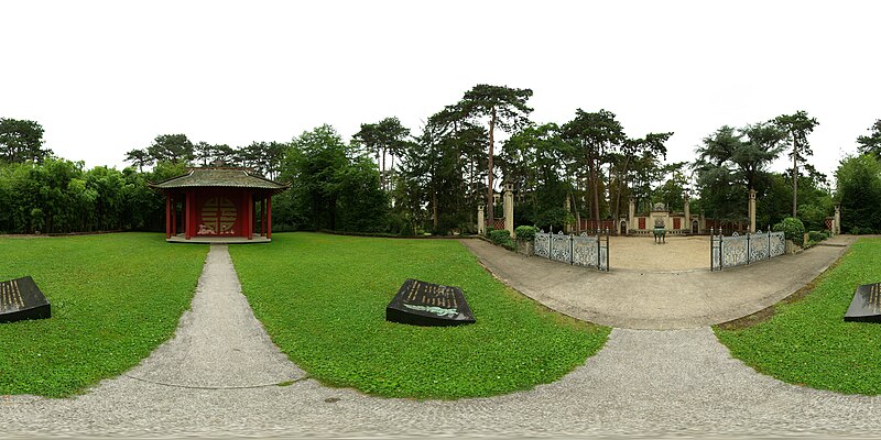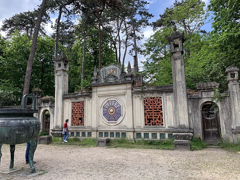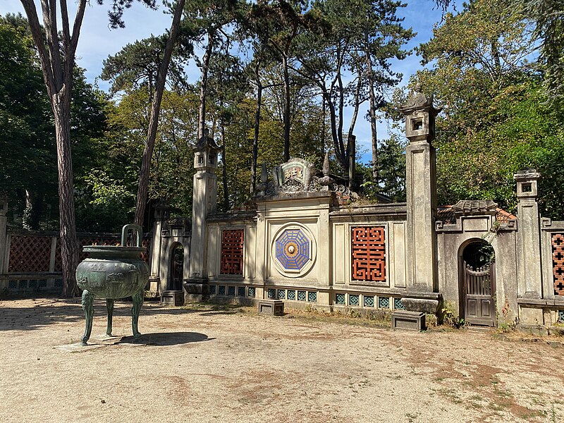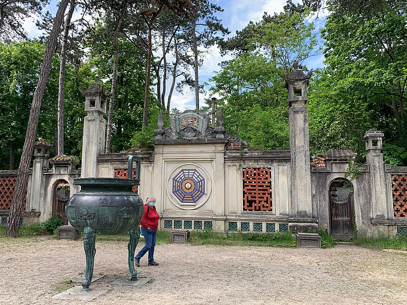 Pagode vietnamienne ou Temple indochinois (incendiée en 1984) : inscription par arrêté du 6 mai 1965 - Grande serre et serre du Dahomey ; pavillons de l'Indochine, de la Tunisie, de la Réunion, du Congo, du Maroc et de la Guyane ; esplanade du Dinh avec son décor et l'urne funéraire, pont tonkinois, pont khmer, porte chinoise, piège à tigre, grande cloche de bois, monuments aux morts de la guerre 1914-1918 (cad. 12 : 01 BD 3) : inscription par arrêté du 1er juin 1994