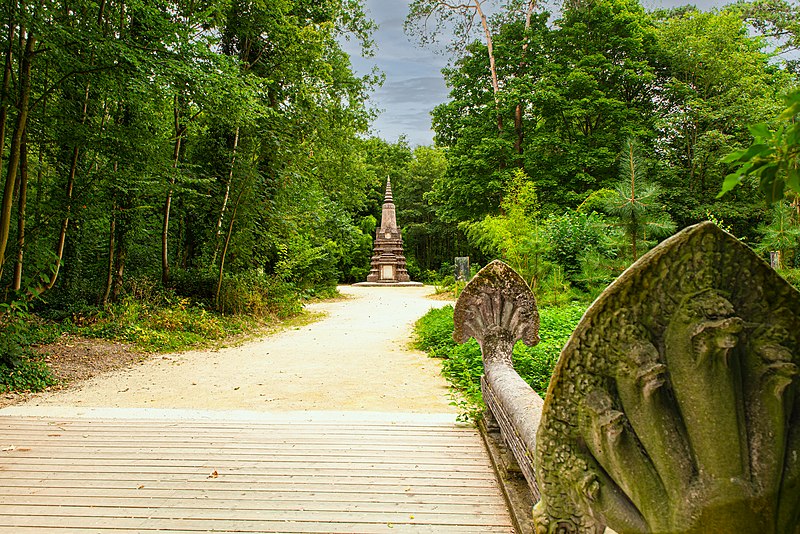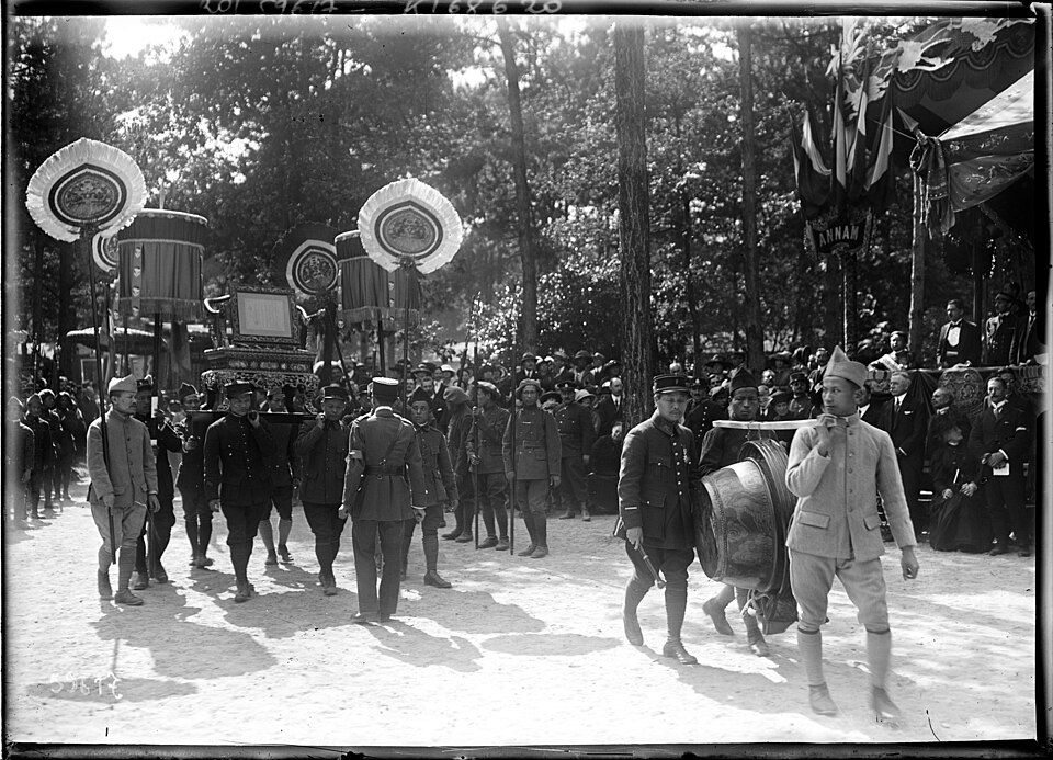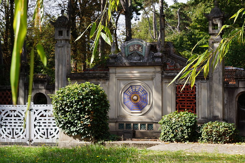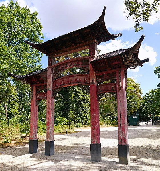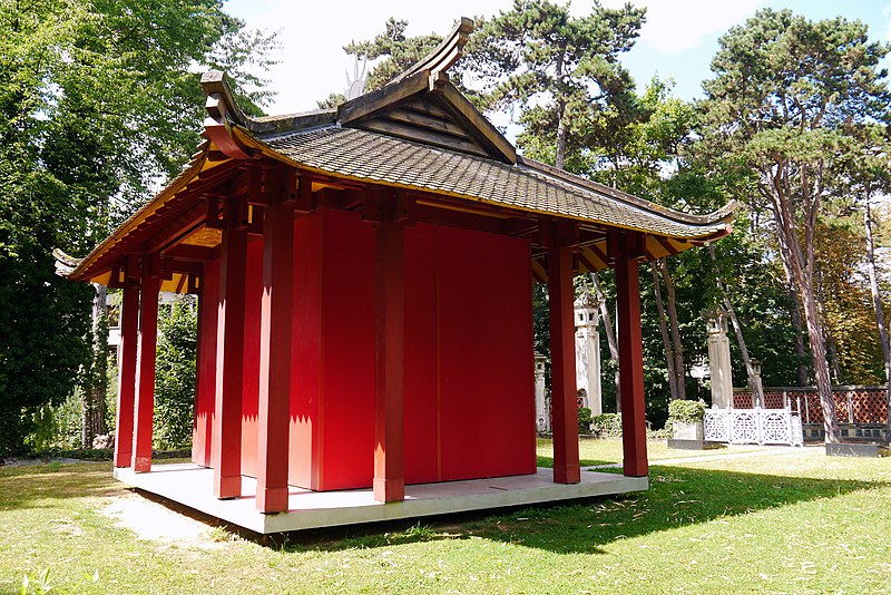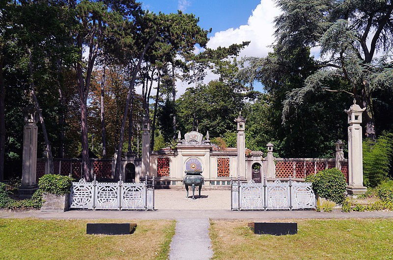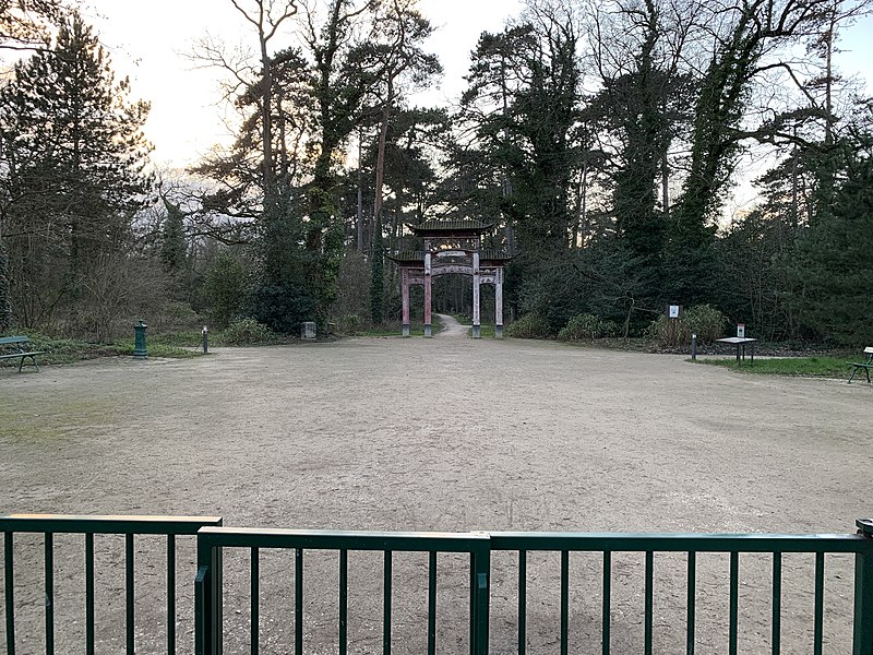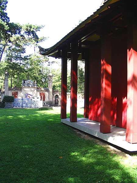 Pagode vietnamienne ou Temple indochinois (incendiée en 1984) : inscription par arrêté du 6 mai 1965 - Grande serre et serre du Dahomey ; pavillons de l'Indochine, de la Tunisie, de la Réunion, du Congo, du Maroc et de la Guyane ; esplanade du Dinh avec son décor et l'urne funéraire, pont tonkinois, pont khmer, porte chinoise, piège à tigre, grande cloche de bois, monuments aux morts de la guerre 1914-1918 (cad. 12 : 01 BD 3) : inscription par arrêté du 1er juin 1994