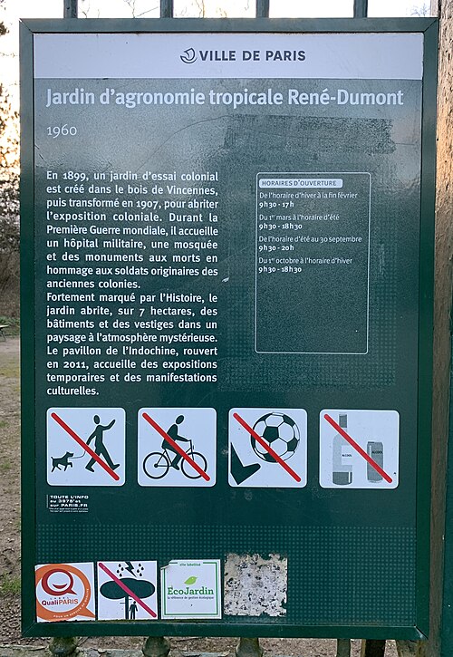 Jardin d'Agronomie Tropicale, situé dans le bois de Vincennes