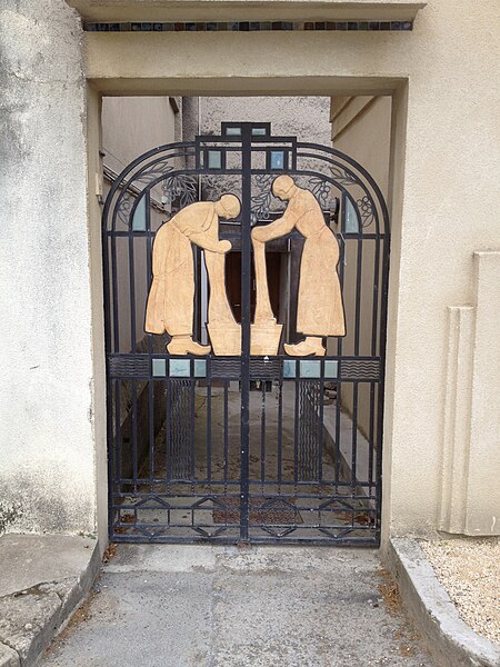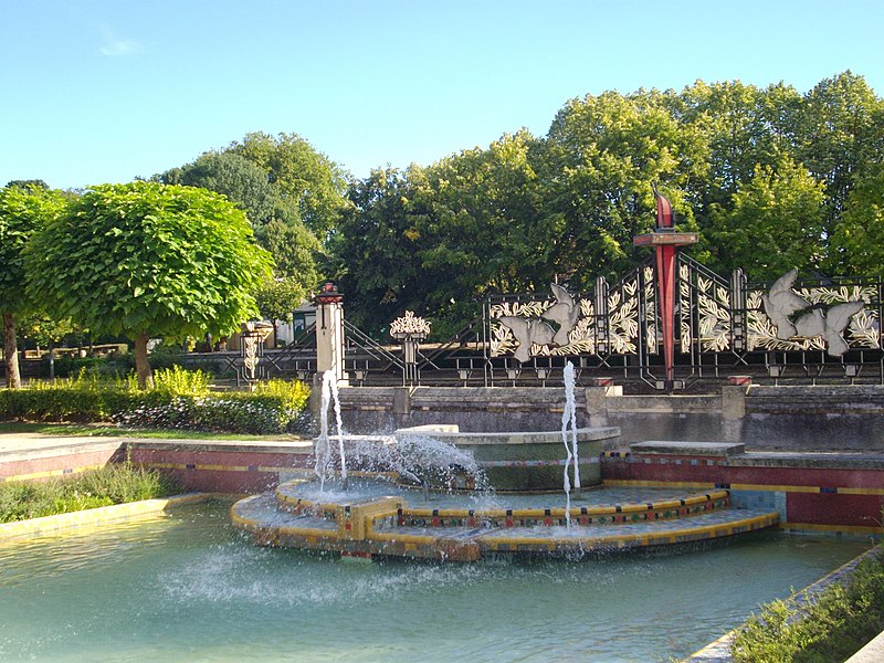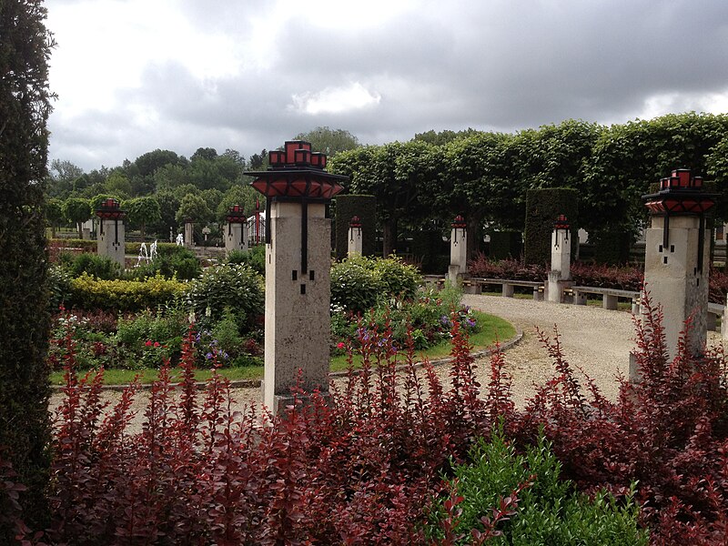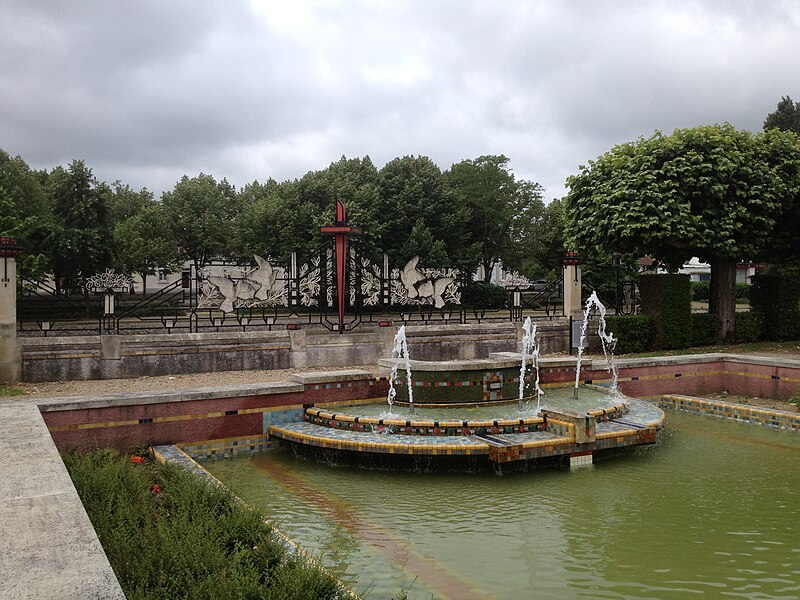 Le jardin s'étend sur 6 000 m² et rassemble le square Lucien Beaufrère, un jardin Art déco, le monument aux morts, un auditorium en plein air et un jardin plus traditionnel qualifié de « romantique ». Dans la partie Art déco, la composition est strictement architecturée : les plantations sont déterminées par Karcher jusque dans le choix des couleurs des essences. Au pied du monument, un bassin est bordé de deux fontaines semi-circulaires revêtues de mosaïques ; derrière elles se dressent les « grilles de la paix », ferronnerie intégrant notamment des colombes en grès. Le monument, taillé en pierre de Lavoux, est décoré de bas-reliefs et de statues évoquant les Poilus, le Travail, la Patrie, la Mère des Douleurs et d'autres figures ; à l'arrière se trouve une pietà laïque montrant une mère portant son fils mort au combat. En 1962 fut installée, à la demande de Karcher, la sculpture L'homme pensant pour commémorer la Seconde Guerre mondiale : le soldat y apparaît enchaîné, surmonté d'un rameau d'olivier censé apporter une note d'espoir, et une citation de Victor Hugo y est gravée. L'auditorium, construit en 1935, porte le nom d'Albert-Collet ; il combine un kiosque à musique, une fosse d'orchestre, des loges d'artistes et une scène, le lavoir étant situé en contrebas. Le jardin dit romantique présente des plantations d'inspiration du XIXe siècle, mêlant essences caduques et persistantes autour d'un cheminement périphérique. L'ensemble a été inscrit au titre des monuments historiques en 1988 puis classé dans sa totalité en 1996, et il a fait l'objet d'importants travaux de réhabilitation entre 2000 et 2007.