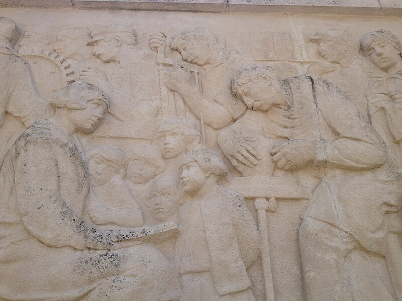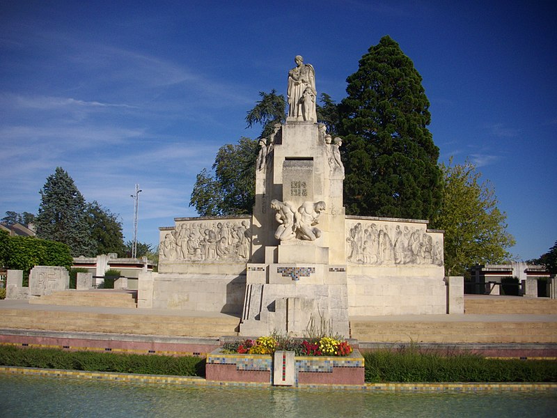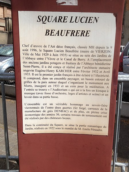 Le jardin de l'Abbaye, également appelé square Lucien Beaufrère, se trouve à Vierzon, dans le Cher. La commune a acquis l'îlot entre le canal de Berry et l'Yèvre auprès de l'abbaye Saint-Pierre en 1922 pour y aménager un jardin public. Un concours pour un monument aux morts fut organisé en 1927 et Eugène-Henri Karcher, architecte et sculpteur, fut lauréat avec un projet qui intégrait le monument dans un jardin conçu pour le mettre en valeur. Karcher rédigea en 1929 au maire Lucien Beaufrère une lettre où il présentait le monument comme « l'Image de la Douleur Humaine et des plus nobles aspirations du cœur humain ». Il résida huit ans à Vierzon pour suivre le chantier et réalisa sur place les sculptures et bas-reliefs dans un atelier mis à sa disposition. Soucieuse d'associer l'art et le social, la municipalité fit appel à des chômeurs pour les terrassements et à des entreprises locales pour les travaux ; les ferronneries furent exécutées par Louis Charbonnier et les céramiques fournies par la manufacture Denbach (société Denbac créée par René Denert et René‑Louis Balichon). Le jardin a été inauguré dans les années 1930 et l'aménagement comprenait également un kiosque-lavoir.