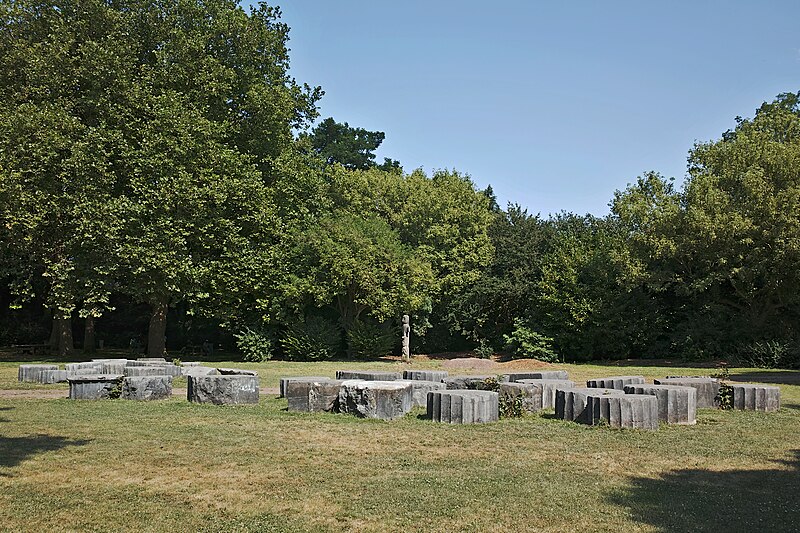 Le jardin, de style mixte, allie la rigueur du jardin à la française et la composition du jardin à l’anglaise, privilégiant grandes pelouses, bosquets et effets de profondeur. La partie centrale suit une composition à la française avec bassins, roseraie et péristyle qui développent une perspective répondant à l’imposante façade du lycée Baggio, conçu par Jacques Lalleman comme un véritable palais de l’enseignement. L’ancienne entrée principale, aujourd’hui condamnée par l’implantation de la tranchée du périphérique en 1971, ouvrait autrefois sur une pelouse bordée d’un mail de tilleuls.