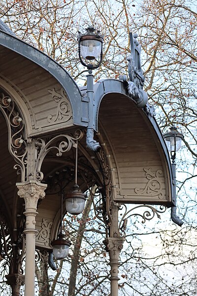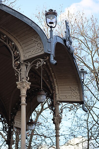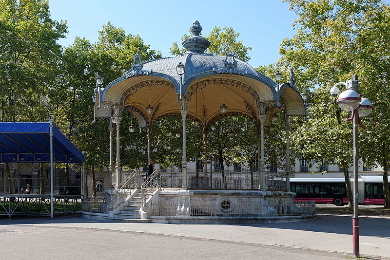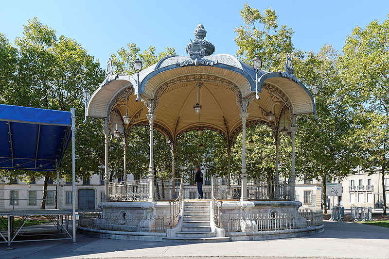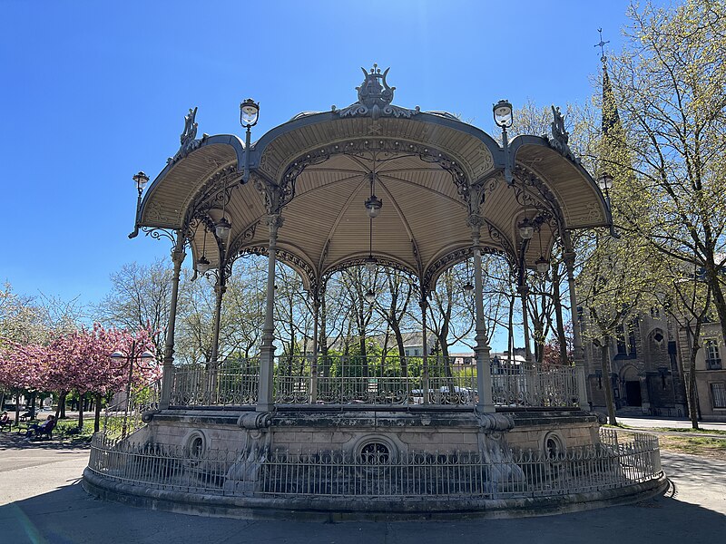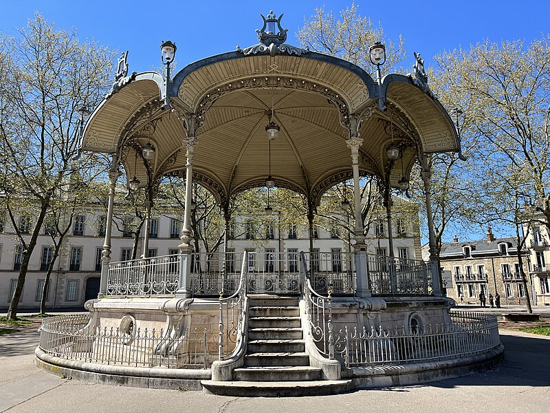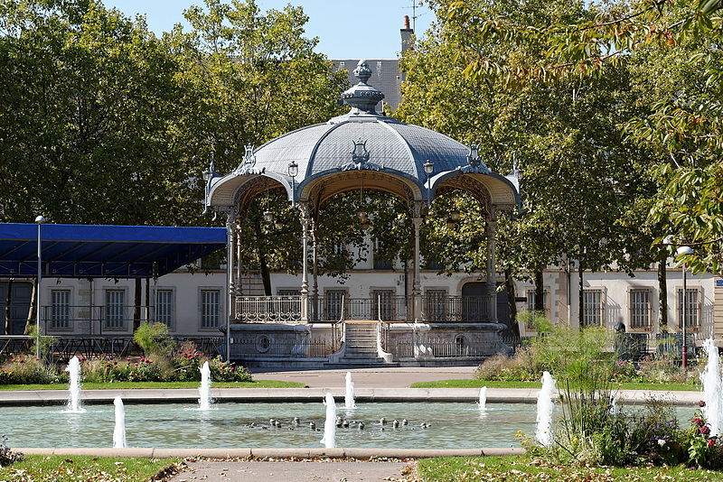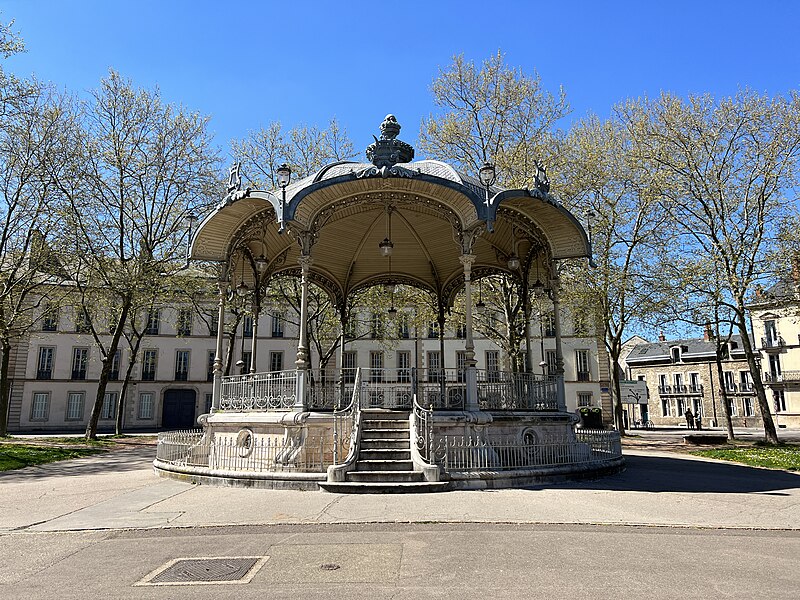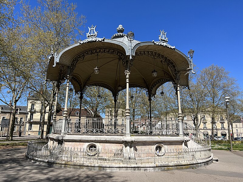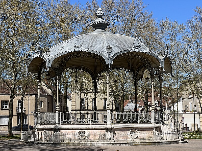 Le kiosque à musique de la place du Président-Wilson à Dijon (Côte-d'Or) est un édicule de style Art nouveau, classé monument historique depuis 1972. Le premier kiosque installé sur la place était une structure en bois construite en 1869. En 1912, un kiosque octogonal de style Art nouveau a été édifié par l’architecte en chef de la ville, Paul Desherault, et inauguré le 14 avril 1912 par la musique militaire du 27e régiment d'infanterie. Les éléments métalliques proviennent de la maison Guillot Pelletier, à Orléans. Pour approfondir, on peut consulter les articles consacrés aux monuments historiques de Dijon et aux édifices labellisés « Patrimoine du XXe siècle » de la Côte-d'Or, ainsi que les ressources en ligne telles que Wikimedia Commons (dossier « Kiosque à musique place Wilson »), la base Mérimée et les portails dédiés aux monuments historiques, à Dijon et à la musique.