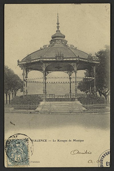 Le kiosque Peynet est un kiosque à musique construit en 1862 au centre de Valence, dans la Drôme. Il est l'œuvre de l'architecte Eugène Poitoux, architecte des hospices civils et militaires de Valence et auteur de la fontaine monumentale, et il est classé monument historique depuis 1982. Le pavillon est situé sur l'esplanade du Champ-de-Mars, face à la place Aristide-Briand, à l'est du parc Jouvet, au nord du lycée Émile-Loubet et à l'extrémité ouest de l'avenue de la Gare. Il se trouve également au sud du quartier du Vieux Valence et, de l'autre côté du Rhône, est dominé par les collines de l'Ardèche et les ruines du château de Crussol. En 1942 le dessinateur Raymond Peynet s'arrêta devant le kiosque et y dessina un petit violoniste et une jeune femme, scène qu'il intitula « La Symphonie inachevée » et qui donna naissance aux célèbres Amoureux de Peynet. Le dessin fut notamment renommé « Les Amoureux de Peynet » par Max Favalelli, rédacteur en chef de la revue Ric et Rac, et connut un succès immédiat qui s'étendit à de nombreux objets et à l'imagerie populaire. Cette popularité internationale permit à Peynet de travailler abondamment pour la presse, et il revint à Valence en avril 1966 pour baptiser officiellement le kiosque à son nom. Dans les années 1970 la municipalité envisagea de démolir le kiosque pour une opération immobilière, mais un conseiller municipal fit circuler une pétition qui contribua à le sauver. Classé monument historique, l'édifice a été entièrement rénové dans sa version initiale de 1862. Jusqu'en 1999 un vaste parking entourait le kiosque et couvrait l'actuel Champ-de-Mars. En 2000 la ville entreprit la reconversion du Champ-de-Mars en enfouissant le parking et en transformant l'esplanade en espace public planté d'arbres et de pelouses, travaux qui ont duré onze mois et ont rendu les trois hectares environnants au public tout en conservant un parking souterrain. Depuis cette restauration, le kiosque métallique, désormais entouré de fontaines, a retrouvé sa splendeur. En 2017 le kiosque Peynet a fait l'objet d'une marque proposant des objets dérivés à ses admirateurs. Sur le bandeau du toit sont gravés les noms de quatre musiciens : Offenbach, Beethoven, Rossini et Mozart. Les Amoureux de Peynet ont inspiré la chanson Les amoureux des bancs publics de Georges Brassens et ont été déclinés sous forme de timbres, cartes postales, poupées, dessins, livres, médailles, bijoux, vaisselle et statues. En France un timbre de 1985, « La Saint-Valentin de Peynet », présente les personnages, et en 2000 La Poste a publié un timbre-hommage montrant les deux héros près d'un kiosque à musique; la poste de Saint-Valentin applique chaque 14 février une oblitération spéciale. Le couple est l'objet d'une importante collection et d'une diffusion mondiale, avec notamment deux musées Peynet au Japon, à Karuizawa et à Sakuto, et deux musées en France, à Antibes et à Brassac-les-Mines, cette dernière commune possédant aussi un kiosque à musique nommé kiosque Peynet. Une statue des Amoureux se trouve à Hiroshima, en face du mémorial de la bombe atomique. Le kiosque est également visible dans le film Les Valseuses de Bertrand Blier (1974).