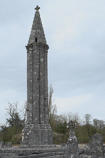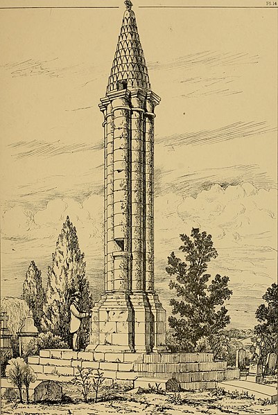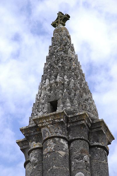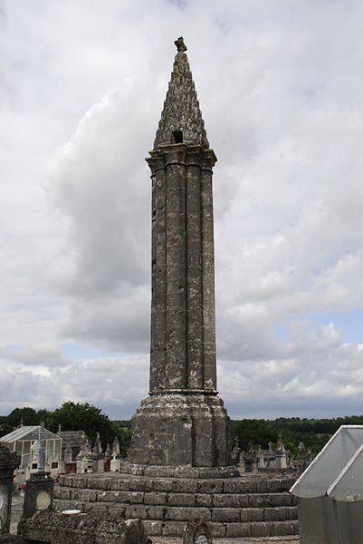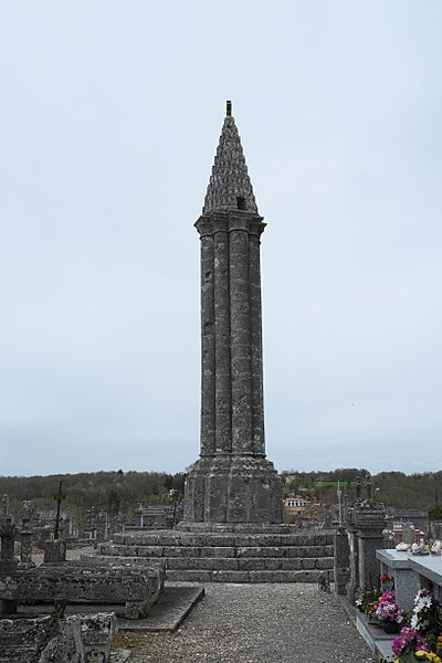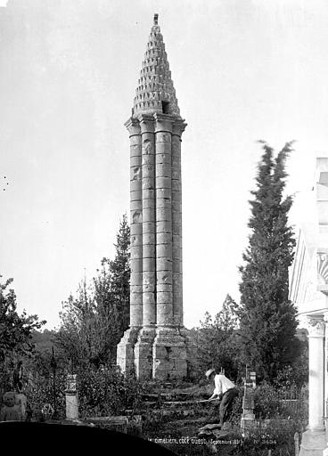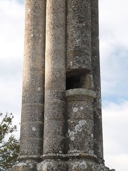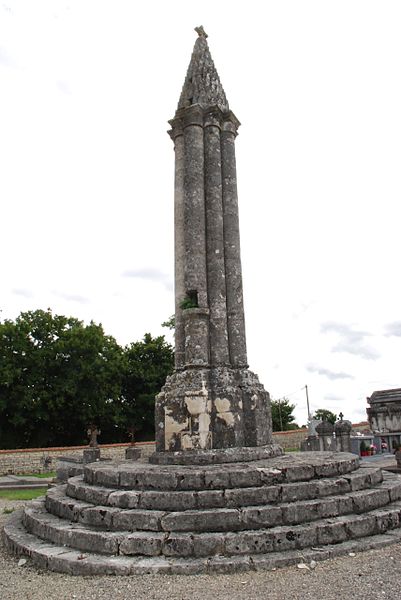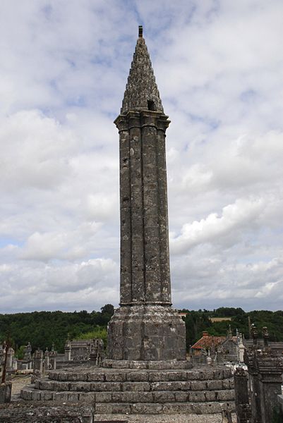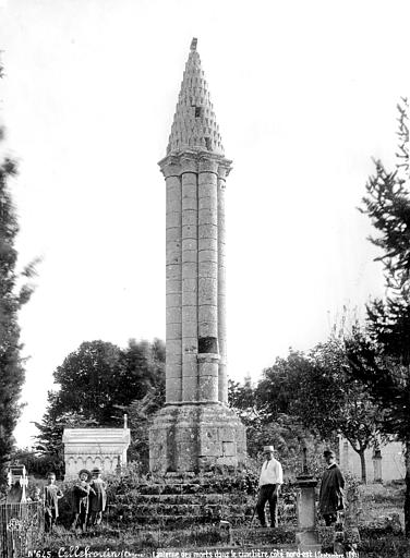 La lanterne des morts de Cellefrouin, située dans le cimetière en haut du bourg de Cellefrouin (Charente), est une tour surmontée d'un pavillon ajouré où l'on hissait au crépuscule un fanal. L'édifice, de style roman, repose sur un soubassement de cinq gradins et son élévation au‑dessus de ces gradins dépasse douze mètres. Un piédestal composé de quatre assises supporte un faisceau de huit colonnes accolées — quatre plus fortes et quatre plus fines — qui laissent au centre un conduit creux accessible par une ouverture carrée dans l'une des colonnes. Les bases des colonnes présentent des griffes, caractéristique qui permet de dater l'ouvrage de la fin du XIIe siècle. Les colonnes sont coiffées de huit assises en retrait formant des chapiteaux sans sculpture, couronnés par un clocheton conique surmonté d'une boule qui porte une croix. Le cône est recouvert de petites pierres calcaires triangulaires appelées platins. À la base du cône, quatre petites fenêtres rectangulaires, placées en regard des quatre grosses colonnes, laissaient rayonner la lumière du fanal; une cinquième ouverture, plus petite, percée au milieu du cône, permettait l'évacuation de la fumée. Le fanal était hissé dans une niche située à trois mètres de hauteur dans l'une des colonnes; au XIXe siècle on y trouvait encore un crochet en fer destiné à retenir la corde servant à monter et descendre le fanal. Le site avait auparavant des tombes mérovingiennes et le cimetière avait été déplacé avant d'être rétabli plusieurs siècles après la construction de la lanterne. L'orientation des quatre ouvertures, cadrant chacune l'une des vallées du Son, de la Sonnette, de la Bonnieure et de la Tardoire, laisse supposer un rôle de repère pour les personnes égarées afin de retrouver l'abbaye Saint‑Pierre de Cellefrouin, tandis que la tradition attribue aux lanternes des morts un rôle religieux attestant de l'immortalité de l'âme et appelant à la prière pour les défunts. Le piédestal a été constitué ou reconstitué en 1828 à partir de pierres tombales récupérées; selon une délibération du conseil municipal, ces travaux ont coûté 10 F de matériaux et 50 F de main‑d'œuvre. La lanterne des morts a été classée au titre des monuments historiques le 12 juillet 1886. Lors de sa séance du 14 novembre 1894, la Société Archéologique et Historique de la Charente a voté une somme de 100 francs pour sa restauration.