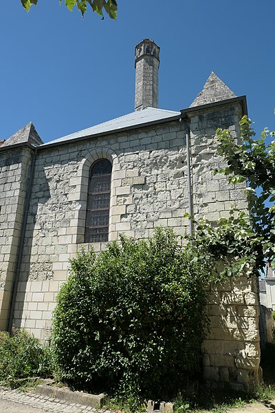 La lanterne des morts de Fontevraud‑l'Abbaye, également appelée chapelle funéraire Sainte‑Catherine, se situe au cœur du bourg de Fontevraud‑l'Abbaye, dans le Maine‑et‑Loire. Comme la plupart des édifices romans de ce type, elle était implantée au sein du cimetière médiéval. Elle se trouve sur l'allée Sainte‑Catherine, qui relie l'église Saint‑Michel à la place du 8‑mai‑1945. De plan carré, l'édifice comprend un ossuaire en rez‑de‑chaussée, voûté en coupole et porté par des pendentifs, ainsi qu'une chapelle haute. La chapelle supérieure est couverte d'une voûte bombée à quartiers rayonnants, munie de nervures multiples dont les clés figurent des anges et peut‑être des évangélistes. La construction est attribuée à Alix, duchesse de Lorraine et fille du duc de Bourgogne, qui se retira en veuvage auprès de sa mère, la huitième abbesse Marie de Champagne, et lui succéda brièvement (1208‑1209) à la tête de l'abbaye et de l'ordre. Déclarée bien national à la Révolution, elle a servi de maison communale. Aujourd'hui, elle abrite une habitation et une activité artisanale. L'édifice a été classé au titre des monuments historiques en 1957. Il est documenté dans divers répertoires et inventaires, notamment ceux des Pays de la Loire, la base Mérimée, le site Clochers de France, ainsi que sur Wikimedia Commons et dans les listes consacrées aux monuments historiques et aux lanternes des morts.