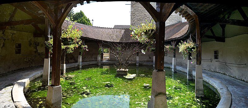 Le lavoir de Brienon-sur-Armançon, situé dans la commune éponyme du département de l'Yonne, est de forme circulaire. Il comporte une galerie couverte en tuiles bourguignonnes et s'atteint en descendant un escalier. L'édifice a été édifié en 1762 et classé au titre des monuments historiques en 1982. Les références citées comprennent le portail des monuments historiques français et le portail de l'Yonne, et la fiche renvoie à la liste des monuments historiques de l'Yonne.