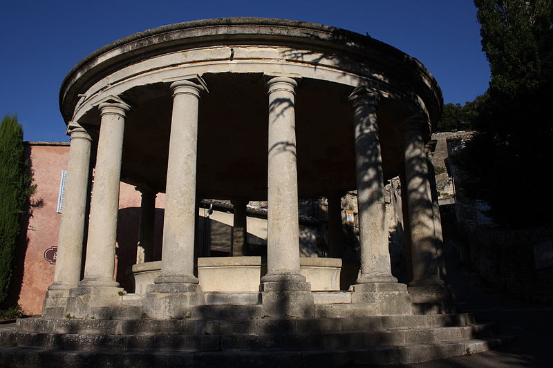 Le lavoir a été construit en 1840 à l'initiative de François-Auguste Ducros, maire de Grignan. Son plan néo‑classique, dressé par Barthélemy — probablement Ferdinand de Grillon, triangulateur du cadastre du Vaucluse — s'inspire du plan du temple de l'Amour du Petit Trianon. Le bassin originel, circulaire, a reçu en 1861 un compartiment en arc de cercle destiné à faciliter le lavage. Le bassin a été reconstruit en 1894. La coupole et l'entablement ont été restaurés en 1907, puis de nouveau en 1987. Les pierres de taille utilisées pour l'édification proviennent des carrières de Chamaret.