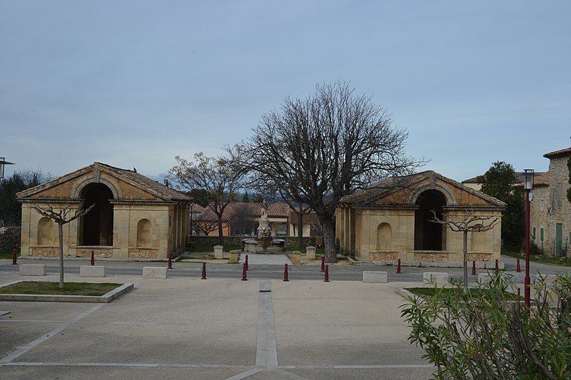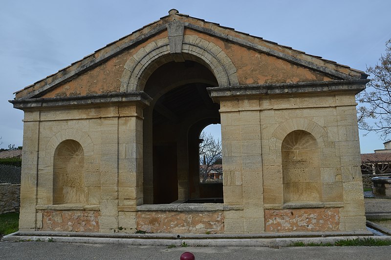 Le lavoir et sa fontaine se situent dans la commune de Saint-Victor-la-Coste, dans le Gard. Le lavoir pourrait avoir été bâti entre 1860 et 1880. Il est composé de deux corps de bâtiments identiques, disposés symétriquement de part et d'autre de l'axe de la cour qui les sépare. Chacun des bâtiments rectangulaires est ouvert sur ses grands côtés par un portique constitué de deux piliers rectangulaires. La façade principale de chaque lavoir présente une parfaite symétrie : dans l'axe, une baie très haute couverte d'un arc en plein cintre éclaire l'intérieur et est encadrée par deux niches en plein cintre à cul-de-four. L'ensemble de la façade, rythmé par quatre pilastres, est surmonté d'un fronton triangulaire. À l'intérieur, une galerie permet la circulation autour du bassin sur trois côtés. Les deux bâtiments sont couverts d'un toit à deux versants, porté par des pannes et renforcé, au droit des rampants, par deux arcs intermédiaires. Au centre de la cour se trouve une fontaine ornée de quatre mufles de lions et de guirlandes; un tambour de colonne cannelée sert de base à une statue de saint Victor représenté en torse. L'édifice est inscrit au titre des monuments historiques en 1980.