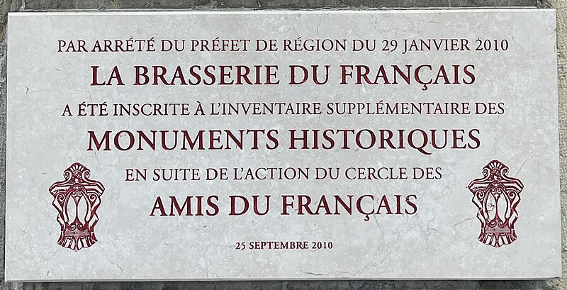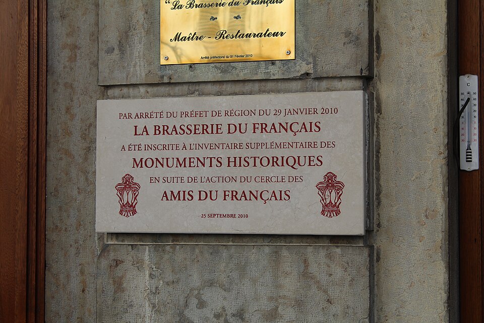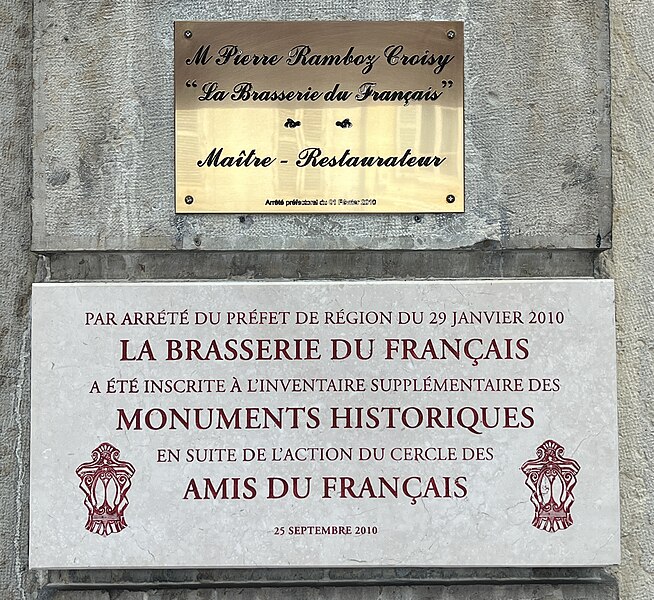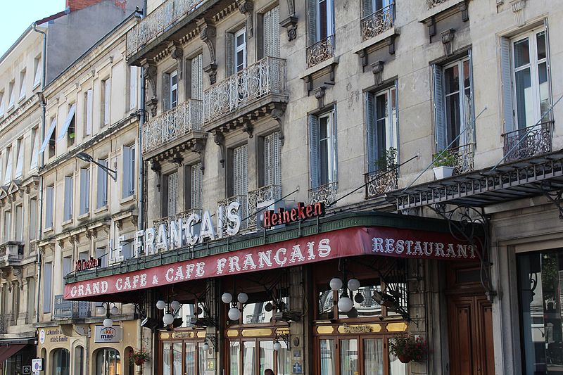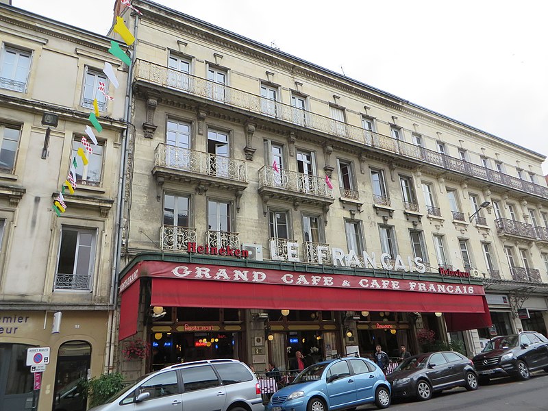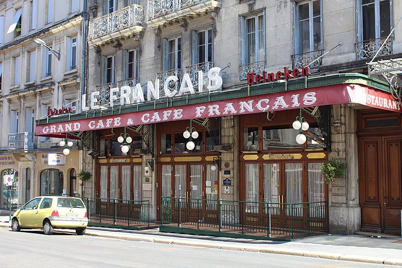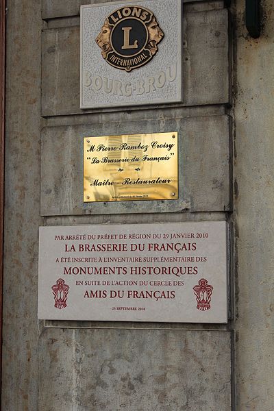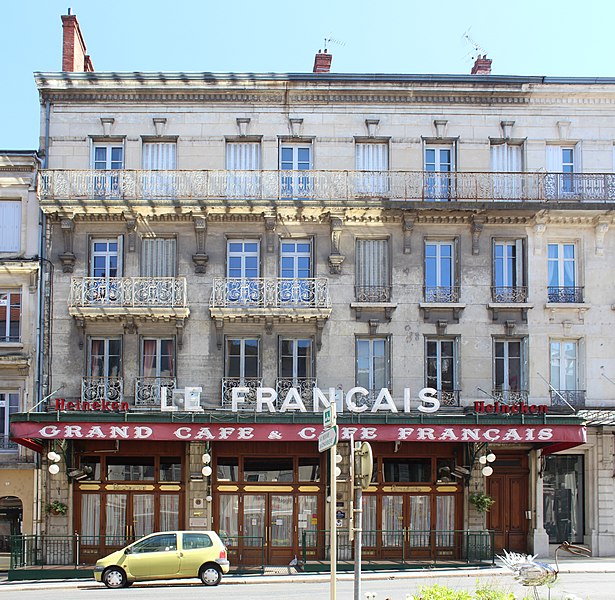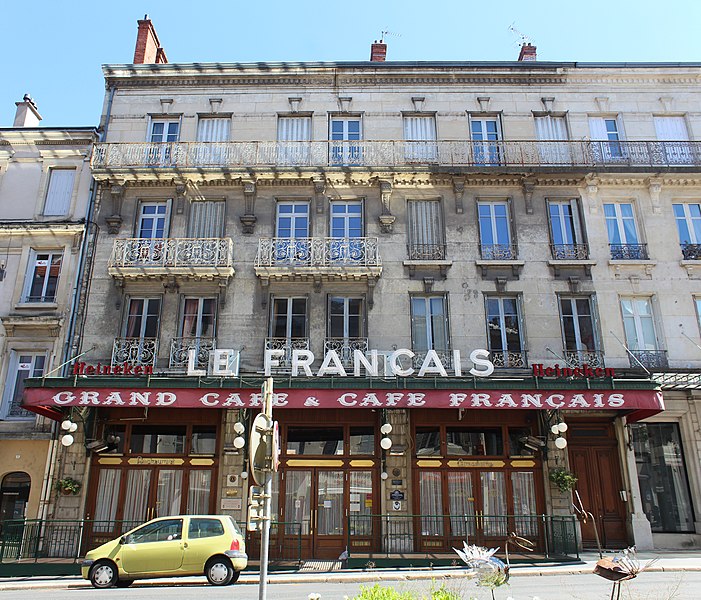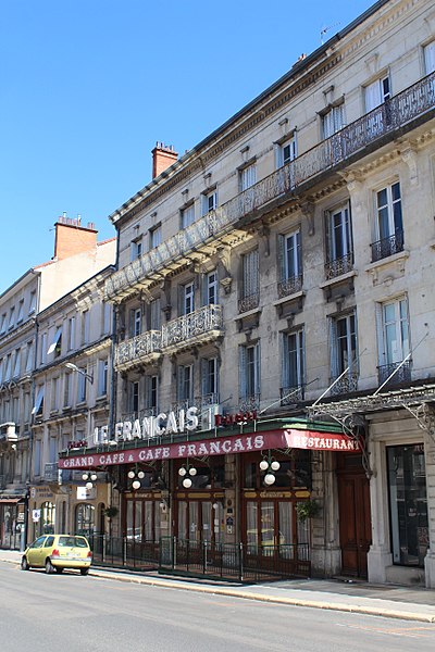 Le Café français, dit Le Français, est une brasserie de Bourg-en-Bresse inscrite au titre des Monuments historiques en 2010 pour ses décors intérieurs et sa marquise extérieure. Implanté dans un plan rectangulaire, il est éclairé par de vastes baies carrées surmontées d'une marquise en fer forgé de style Art déco posée en 1928, qui accompagne une lustrerie intérieure du même style. La vaste salle de restaurant est entièrement revêtue de boiseries et de stucs vernis couleur caramel, dans lesquels sont enchâssés dix grands miroirs séparés par un décor de fausses colonnes. Le plafond, traité dans le même esprit, se divise en six caissons ornés de moulures à motifs végétaux et de pendentifs aux angles. En 1952, le café se transforme en brasserie : les sols de pierre sont remplacés par des dalles de carrelage, des fauteuils sont placés au centre de la salle et des éléments en laiton protègent les boiseries le long des murs. Le lieu a accueilli de nombreuses figures de la vie culturelle de Bourg-en-Bresse, parmi lesquelles Roger Vailland, ainsi que des personnalités du monde des arts, du spectacle et de la politique. La brasserie met à l'honneur la cuisine bressane et les produits locaux sous appellation contrôlée, notamment beurre et crème de Bresse et poulet de Bresse, dont elle sert environ 300 poulets par mois en utilisant 80 kg de beurre et 120 litres de crème. La carte propose des plats traditionnels tels que la soupe de poisson accompagnée de rouille, l'entrecôte à la crème et aux morilles, le filet "pierre", le poulet de Bresse à la crème, le pâté en croûte et la tarte aux fraises.