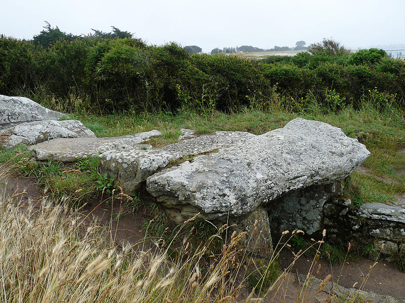 Maudet de Penhoët trouva le monument rempli de terre, ce qui le conduisit à penser qu’il avait déjà été fouillé ; il y recueillit quelques ossements humains et une urne funéraire. Lors des travaux de 1892 furent mis au jour des fragments de trois ou quatre vases en terre cuite de facture grossière, deux ou trois percuteurs en quartz et une vingtaine de silex travaillés. Le style des poteries découvertes suggère une construction vers la fin du IVe millénaire av. J.‑C. ou au début du IIIe millénaire av. J.‑C.