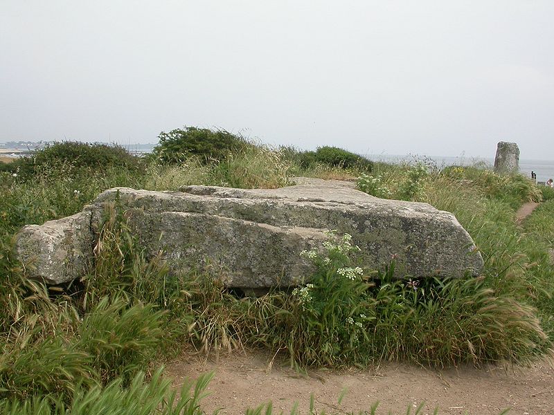 Les Pierres-Plates (breton : ar Vein Plat) sont une allée couverte située à Locmariaquer, dans le Morbihan. En 1813, Maudet de Penhoët fit fouiller le monument ; un membre de son équipe, M. Dubois, en dressa un plan et releva des gravures que Penhoët interpréta comme des écritures phéniciennes. En 1814, Fréminville visita le site avec Joachim Renaud et fut le premier à nommer le monument « Pierres‑Plates ». Lors d’un retour en 1816, Fréminville constata que l’allée couverte était presque entièrement détruite. En 1866, deux membres de la Société polymathique du Morbihan ne retrouvèrent que deux dalles gravées et en firent des estampages. L’État acquit le monument en 1892 aux hospices d’Auray, puis le fit déblayer et restaurer ; il est classé au titre des monuments historiques depuis 1889. En 1942, la construction de bunkers du Mur de l’Atlantique menaça le site, l’organisation Todt ayant déjà détruit plusieurs monuments voisins pour récupérer des pierres.