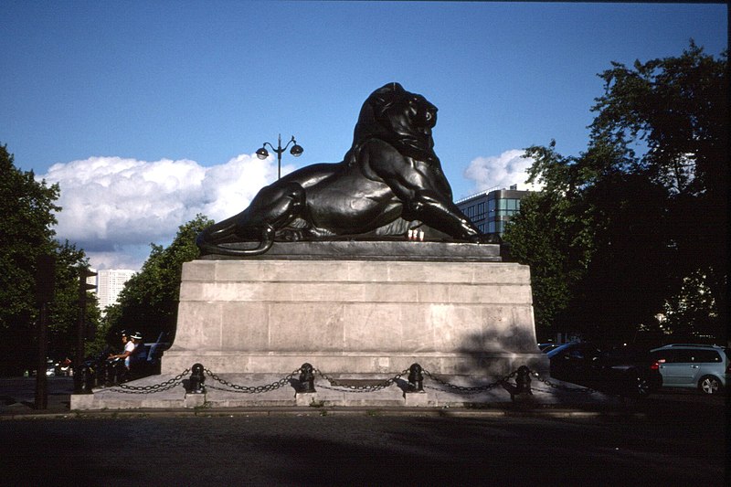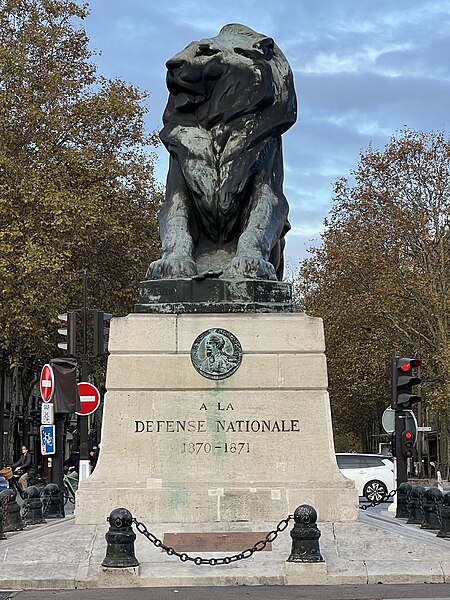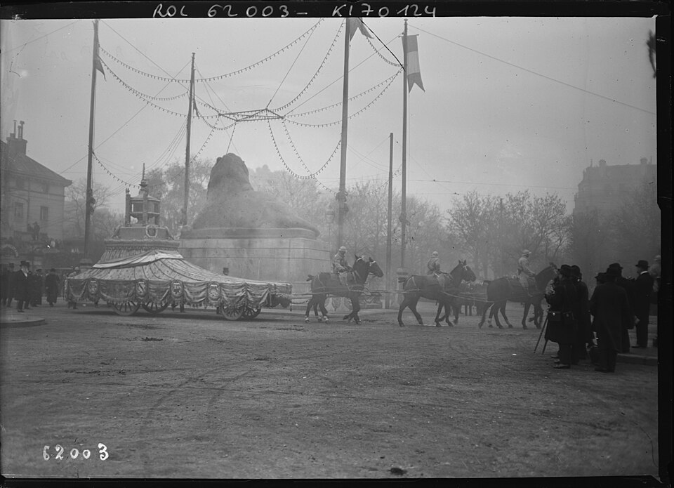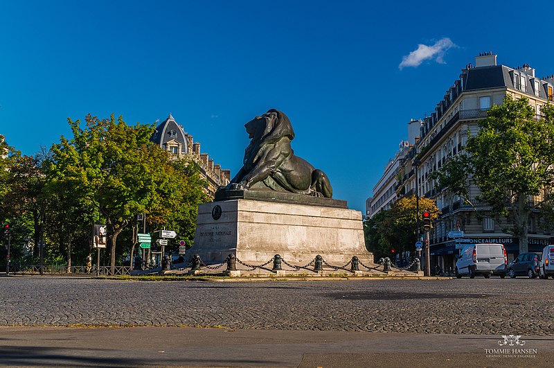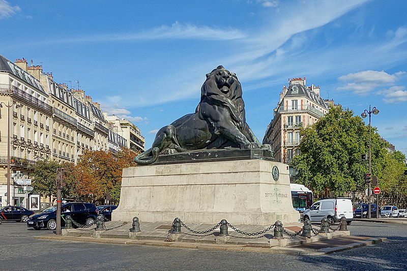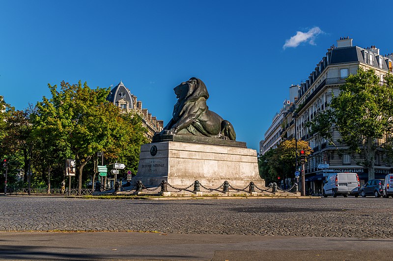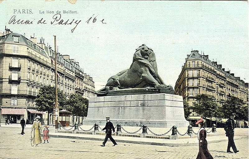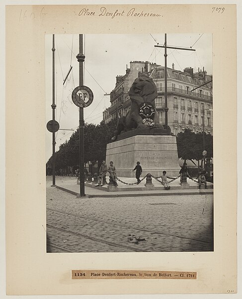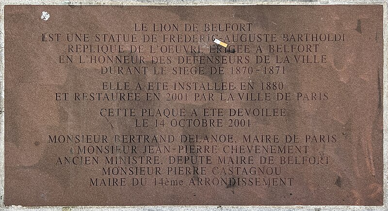 Un médaillon en bronze à l'effigie du colonel Denfert-Rochereau est ajouté au piédestal.