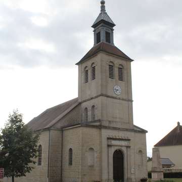 L'Église Saint-Aubin, édifice religieux de la commune de Fétigny dans le Jura, classé 1 écu.