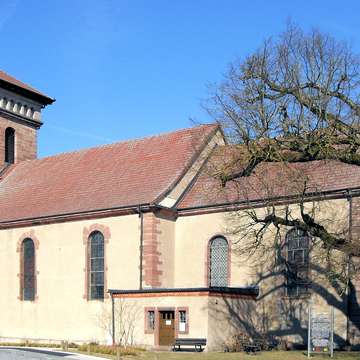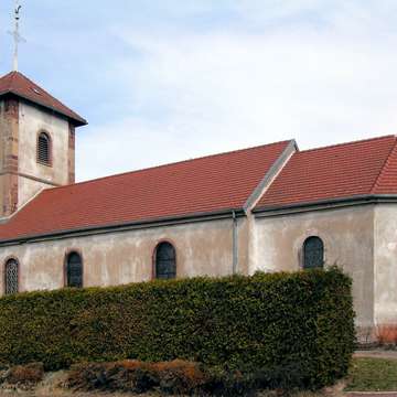 L'Église de l'Exaltation-de-la-Sainte-Croix, édifice religieux de la commune de Chèvremont dans le Territoire de Belfort, classé 2 écus.