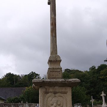 La croix du xviie siècle, patrimoine religieux de la commune de Plusquellec dans les Côtes-d'Armor, classé 1 écu.