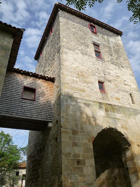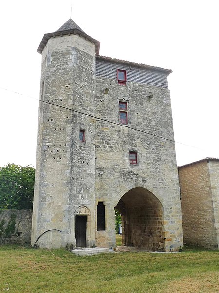 Il ne subsiste aujourd'hui que la haute tour d'entrée, datée du XIVe siècle, et une tour d'escalier polygonale ajoutée au XVIe siècle, ainsi que des salles souterraines. La poterne, aménagée au XVe siècle selon les sources, était encadrée de chaque côté par un rempart aboutissant à des tours d'angle cylindriques. La tour‑porche est percée à sa base d'un passage voûté en berceau brisé et flanquée d'une tourelle hexagonale contenant un escalier en vis ; l'accès à cet escalier se fait à l'ouest, côté cour, par une porte rectangulaire surmontée d'un tympan en demi‑cintre portant trois blasons martelés.