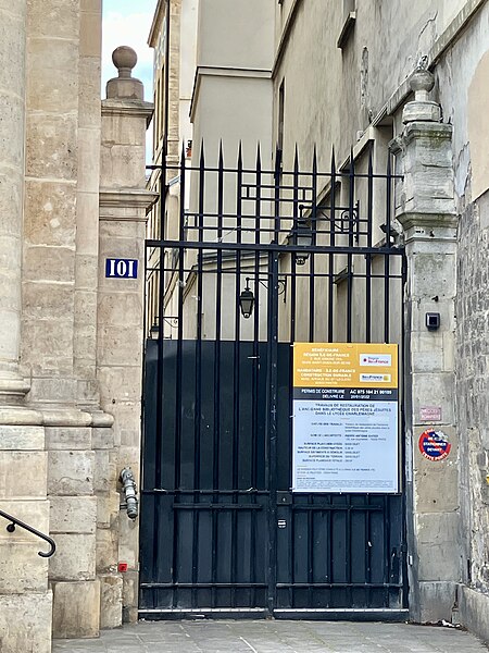 Le lycée est lié au collège Charlemagne, situé en face, et jouxte l’enceinte de Philippe-Auguste dont subsiste le parement extérieur.