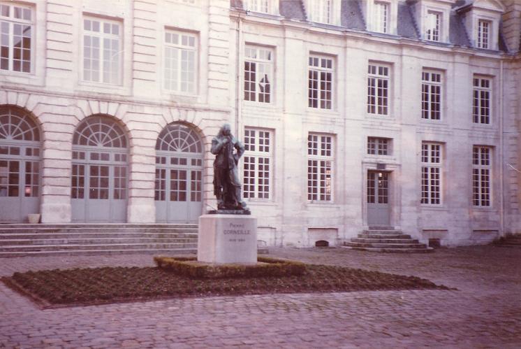 Le lycée Pierre‑Corneille occupe depuis le début du XIXe siècle l'ancien collège des Jésuites, ouvert à cet emplacement en 1604. Les bâtiments, datés des XVIIe et XVIIIe siècles, comprennent la chapelle ainsi que l'ensemble des constructions bordant la cour d'honneur et la cour des cuisines. Le Petit lycée de Joyeuse, édifié en plusieurs campagnes entre 1850 et 1900 sur l'emplacement de l'ancien séminaire de Joyeuse, complète cet ensemble. Parmi les architectes intervenus figurent Martinet pour les parties du XVIIIe siècle et Chéruel, Hubert Touzet et Trintzius pour les travaux du XIXe siècle. Le décor et les œuvres du lycée comprennent des fresques de Paul Baudouin, le décor peint de Philippe Zacharie dans la salle des Actes, le monument aux morts d'Édouard Delabarre et Albert Guilloux ainsi que la statue de Corneille réalisée par René Duparcq. Établissement public d'enseignement secondaire, le lycée forme des élèves de la seconde jusqu'aux classes préparatoires aux grandes écoles. La chapelle est classée monument historique depuis le 21 mars 1910 ; l'ancien collège des Jésuites et le Petit lycée de Joyeuse ont fait l'objet d'une inscription le 28 décembre 1984 puis d'un classement le 31 décembre 1985. Le Collège de Bourbon, qui préfigure l'actuel lycée, a été fondé à la fin du XVIe siècle et rouvert à cet emplacement en 1604 après une interruption liée à l'expulsion des jésuites. Au XVIIe siècle l'établissement connaît un développement rapide et, dès sa réouverture, doit refuser de nombreux candidats ; une première extension permet alors la construction du portail actuel et d'une vaste chapelle. L'enseignement, alors surtout dispensé en latin, intègre aussi le français, l'histoire, la géographie et les sciences, avec un nombre limité de professeurs. Au XVIIIe siècle l'enseignement gagne en scientificité et un important programme de construction laisse notamment la cour d'honneur et la salle des Actes. Malgré la suppression des jésuites, l'établissement conserve son activité en devenant Collège Royal. Sous la Révolution et l'Empire, il accueille une École centrale qui diversifie les enseignements, puis retrouve la forme du lycée avec un retour aux lettres classiques et aux mathématiques. Le XIXe siècle voit le lycée fonctionner selon le modèle napoléonien, avec une discipline stricte et la préparation au baccalauréat ; les classes préparatoires sont créées en 1870 et l'établissement prend le nom de lycée Corneille en 1873. Transformé en hôpital militaire pendant la Première Guerre mondiale et en partie occupé par l'armée allemande pendant la Seconde, le lycée subit des bombardements en 1942 et surtout le 19 avril 1944. Le monument aux morts présent dans l'enceinte porte les noms d'anciens élèves morts au combat ou en déportation et fait l'objet d'une commémoration le 11 novembre. Réquisitionné par la Wehrmacht, l'établissement conserve des inscriptions en allemand dans le portique de l'entrée Joyeuse. Après l'ouverture du restaurant scolaire en novembre 2015, une vaste programmation de travaux conduite par la région Normandie est prévue entre 2018 et 2023 pour la réhabilitation de plusieurs bâtiments et la création d'équipements, dont une salle de conférences, un pôle audiovisuel, la reconstruction du bâtiment des sciences et la restructuration d'une partie du lycée incluant la cour d'honneur. La chapelle Saint‑Louis, dont la première pierre fut posée par Marie de Médicis, présente une nef unique et un plan en croix ; longue de 52 mètres, elle combine des éléments du gothique tardif et du style classique. Menacée de démolition en raison de son mauvais état, elle est sauvée par une décision du conseil municipal en 1895, classée en 1910, endommagée en 1942 puis progressivement restaurée et aménagée dans les années 2010 en auditorium. La section norvégienne, créée en 1918, accueille pendant trois ans de jeunes élèves norvégiens ; ses commémorations et visites officielles, notamment en 1987 et à l'occasion du centenaire en 2018, témoignent des relations bilatérales entretenues avec la Norvège. L'association des anciens élèves, fondée en 1864 après des réunions informelles depuis 1840, publie dès 1906 le bulletin Notre vieux lycée auquel ont collaboré Maurice Leblanc, André Maurois et Jacques Villon ; l'association sportive des Francs Joueurs a été créée en 1890. Le lycée, désormais mixte, propose une offre d'enseignements secondaires diversifiée avec des options et enseignements d'exploration en langues anciennes et vivantes, en sciences, en arts et en pratiques sportives, ainsi que des sections européennes et des classes préparatoires économiques et scientifiques. Une section cinéma et audiovisuel existe depuis 1958, prolongée par un BTS Audiovisuel mis en place en 1993. L'établissement est desservi par plusieurs lignes du réseau Astuce aux arrêts Lycée Corneille, Hôtel de Ville et Beauvoisine. De nombreux professeurs et anciens élèves ont marqué la vie culturelle et scientifique ; parmi eux figurent Pierre et Thomas Corneille, Camille Corot, Gustave Flaubert, Marcel Duchamp, Guy de Maupassant, Maurice Leblanc, André Maurois, Charles Nicolle et Thomas Pesquet. Une partie du matériel pédagogique du lycée, notamment 32 modèles de botanique réalisés par Louis Auzoux, est conservée au musée national de l'Éducation après un don du lycée en 2007.