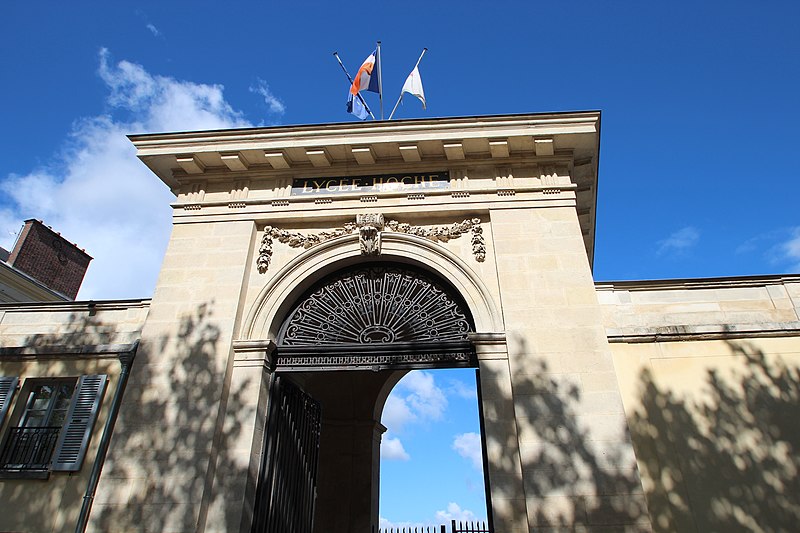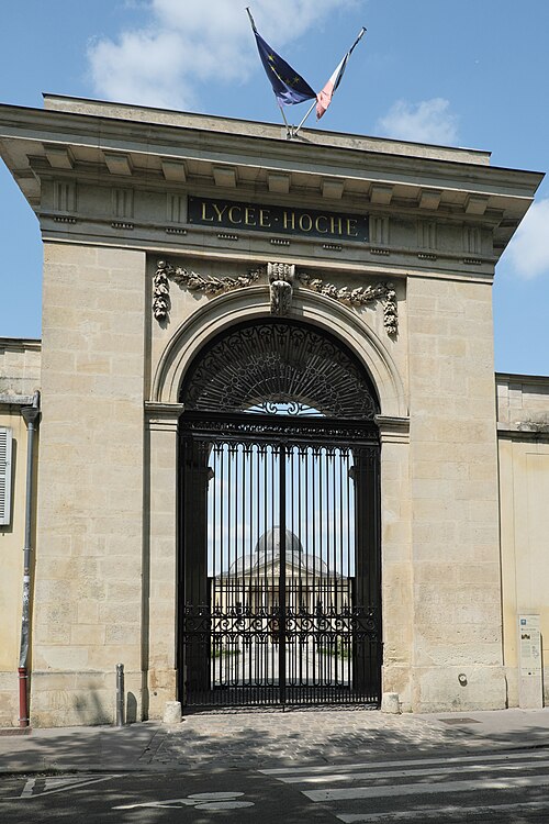 L'ancien couvent de la Reine, aujourd'hui lycée Hoche, est un ensemble d'architecture palladienne de la fin du XVIIIe siècle, construit sous la direction de l'architecte Richard Mique entre 1767 et 1772. Destiné aux chanoinesses de Saint-Augustin, le couvent assurait l'éducation de jeunes filles, notamment celles des familles des serviteurs de la cour, accueillant en permanence quatre-vingts pensionnaires et près de 383 élèves entre 1772 et 1789. La Révolution entraîna la mise à disposition des biens du clergé, un inventaire en 1790 et le départ définitif de la congrégation en 1792 ; la chapelle fut successivement occupée par la Société des Droits de l'Homme, transformée en hôpital militaire et l'établissement servit de dépôt avant d'être réaffecté comme hôpital succursale des Invalides. Sous le Consulat et l'Empire l'ancien couvent fut choisi pour devenir un lycée : transformé par décret en 1803, il ouvrit en 1804 après des travaux dirigés par son premier proviseur Dieudonné Thiébault, reçut ses premiers professeurs et élèves en 1806 et fut inauguré en 1807. Rapidement reconnu pour la qualité de son enseignement, il fut placé parmi les lycées de première classe de l'Empire et, en 1819, assimilé aux lycées parisiens pour la participation au concours général et le développement de classes préparatoires aux grandes écoles. Le lycée prit en 1888 le nom de Hoche en hommage au général Lazare Hoche, natif de Versailles. Entre 1914 et 1919 il fonctionna à nouveau comme hôpital militaire géré par la Croix-Rouge. La chapelle est classée monument historique depuis 1926 et le reste des bâtiments conventuels est inscrit depuis 1969 ; les locaux ont été rénovés et restitués dans la disposition voulue par Richard Mique, la chapelle conservant notamment La Crucifixion d'Aubin Vouet (1626). Le site, situé 73 avenue de Saint-Cloud dans le quartier Notre-Dame à Versailles, est aujourd'hui un établissement public d'enseignement secondaire et supérieur transféré de l'État au conseil régional. Il accueille collégiens, lycéens et classes préparatoires, propose une filière générale du lycée avec la plupart des spécialités et des classes préparatoires scientifiques et économiques et commerciales, et recrute les lycéens sur dossier ; un internat est disponible pour une partie des élèves. Le lycée jouit d'une réputation d'excellence au baccalauréat et aux concours d'entrée aux grandes écoles, particulièrement dans les filières scientifiques et commerciales visant des écoles comme les Écoles normales supérieures, Polytechnique, Mines de Paris, CentraleSupélec, l'École des Ponts et HEC Paris. L'organisation matérielle comprend quatre bâtiments principaux qui regroupent les enseignements scientifiques et techniques, les langues et les lettres dans l'ancien couvent, les disciplines historiques et économiques, les salles des classes préparatoires, des installations sportives et des ateliers artistiques et musicaux, ainsi que la chapelle. Sur le plan pédagogique, l'établissement a expérimenté tôt des initiatives technologiques, notamment en 1974 dans le cadre de l'opération ministérielle dite « Expérience des 58 lycées » pour l'initiation à l'informatique. Le lycée abrite de nombreuses associations scolaires actives : Parlement Hoche, la Maison des lycéens (anciennement foyer socio-éducatif), le club informatique, Interact Hoche et une association sportive, le Hoche Athletic Club, qui développent projets culturels, scientifiques, humanitaires et sportifs. Le foyer et les clubs ont porté des réalisations primées au niveau national et Interact Hoche organise collectes et actions de terrain au profit d'associations et de publics fragiles. L'établissement compte parmi ses anciens élèves et professeurs de nombreuses personnalités dans les sciences, les lettres, la politique et les arts, comme Raymond Aron, Cabu, Henri Cartan, Claude Lévi-Strauss, Boris Vian, Wendelin Werner, Jacques Chirac, Francisco I. Madero et des membres du groupe Phoenix. L'Association amicale des anciens élèves, fondée au milieu du XIXe siècle et reconnue d'utilité publique en 1868, entretient ces liens et la mémoire des élèves illustres. Le lycée a connu des affaires judiciaires récentes : plusieurs condamnations liées à des marchés publics ont été prononcées en 2003 et confirmées en 2004, et l'intendante a été condamnée en 2011 pour harcèlement moral. Différentes évaluations récentes le placent régulièrement parmi les établissements performants au niveau académique et national, et la proviseure actuelle est Barbara Chappe.