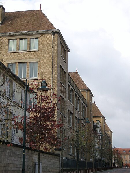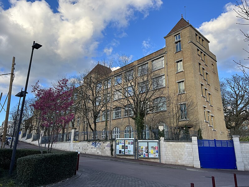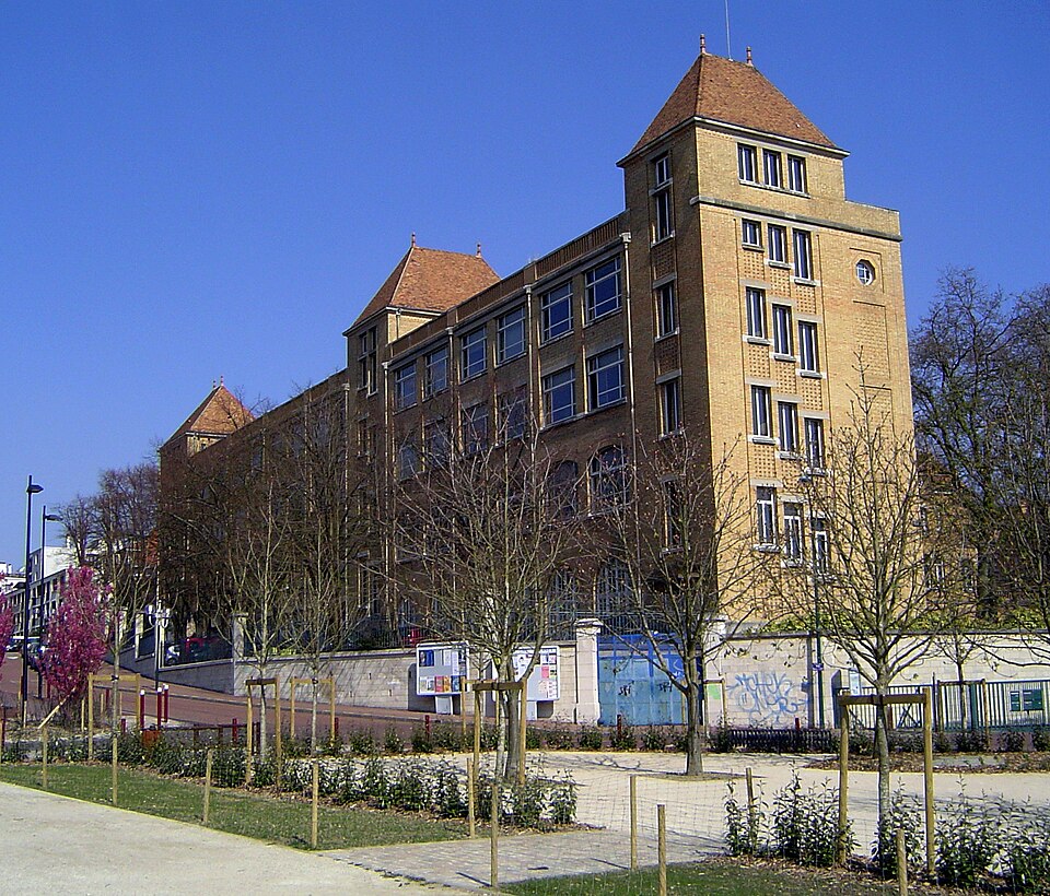 Le lycée Marie‑Curie est un bâtiment de style Art déco : Émile Brunet, architecte en chef des Monuments historiques, l’a conçu en s’entourant d’artisans et d’artistes — Auguste Labouret, Raymond Subes, Albert Chartier et Louis Barillet — et en habillant une structure en béton armé d’un parement en briques ocres à l’extérieur et blanches à l’intérieur. Le grand hall présente huit mosaïques d’Auguste Labouret représentant des jeunes filles dans diverses activités ; Labouret et Subes signent également la porte monumentale ornée de pavés de verre figurant les disciplines enseignées. Albert Chartier a réalisé le fronton en bas‑relief Les Sciences et les Lettres et le buste de Marie Curie, aujourd’hui placé dans le vestibule. Une fresque enfantine de Robert Lotiron, jadis dans le jardin d’enfants, est aujourd’hui recouverte mais signalée comme restaurable.