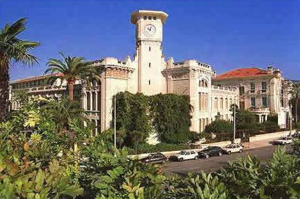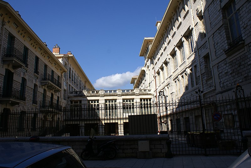 L'implantation trouve son origine dans le couvent des Augustins déchaux, installé face au Pont-Vieux ; les religieux s'y installent en 1643 et entreprennent la construction du couvent à partir de 1644, achevée entre 1663 et 1672. Après l'occupation révolutionnaire du comté de Nice en 1792, les bâtiments sont attribués à l'école centrale du département, supprimée par arrêté préfectoral le 13 brumaire an XI (4 novembre 1802) conformément à la loi du 11 floréal an X. Un arrêté des consuls du 1er vendémiaire an XII (24 septembre 1803) ordonne la création du lycée de Nice ; les travaux, commencés en novembre 1805, sont interrompus à deux reprises et s'achèvent vers le milieu de 1811. Le lycée ouvre en février 1812 sous la direction de François de Orestis, unique lycée du département à cette époque, puis ferme fin juin 1814 après la restitution du comté à la maison de Savoie. Victor-Emmanuel Ier installe la Compagnie de Jésus et le lycée devient un collège royal ouvert en 1820 ; après l'expulsion des Jésuites en 1848 il est remplacé par un Collegio Convitto Nazionale.