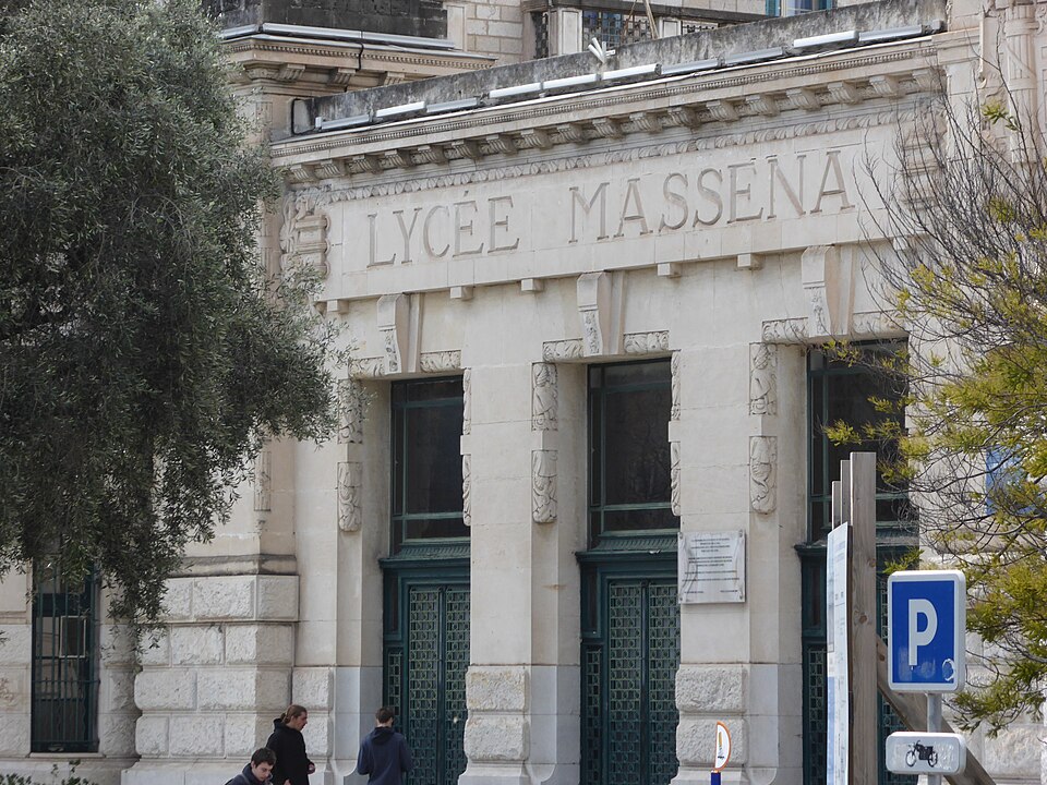 Le lycée Masséna, établissement d'enseignement général, accueille des élèves provenant notamment du quartier du Port, du Vieux-Nice et des communes de l'est niçois comme Villefranche-sur-Mer, Beaulieu-sur-Mer, Saint-Jean-Cap-Ferrat et Èze. Sa devise est Alta alatis patent (« Le ciel est ouvert à ceux qui ont des ailes »). Il compte environ 1 675 élèves, répartis entre 835 élèves de la seconde à la terminale et 840 étudiants en classes préparatoires, dont 147 internes. L'architecture du lycée, renommée pour ses mosaïques, ses jeux de toits et son influence italienne, est dominée par la tour de l'horloge dont le cadran porte la maxime Horas ne numerem nisi serenas (« Je souhaite ne compter que les heures heureuses »).