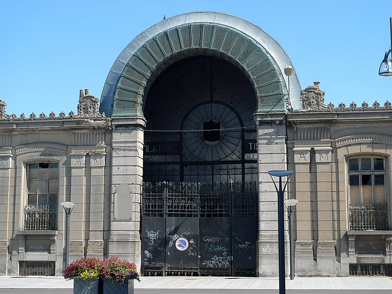 Construit par l'architecte lillois Émile Vandenberghe vers 1880 (mentionné aussi en 1881) pour la vente de toiles de lin, cet édifice commercial des établissements Mahieu a été partiellement détruit pendant la Première Guerre mondiale puis reconstruit à l'identique. Sa façade constitue une véritable enseigne publicitaire. Il sert aujourd'hui d'entrepôt industriel pour Beaudeux.