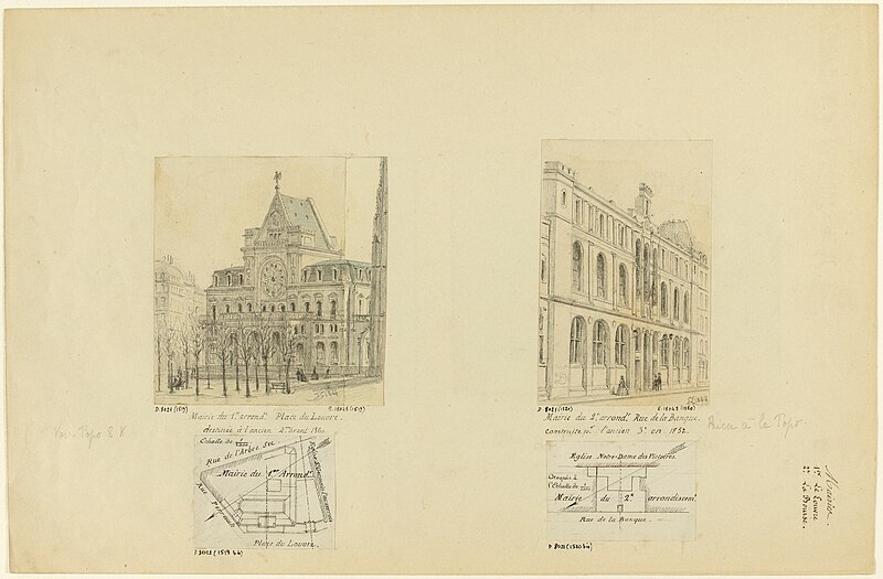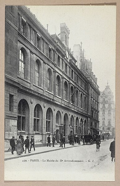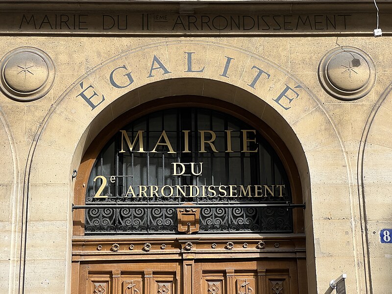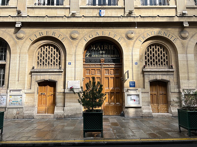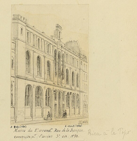 La mairie annexe du 2e arrondissement, située au 8 rue de la Banque à Paris, a abrité les services municipaux de cet arrondissement. Le bâtiment a été conçu par l'architecte Alphonse‑François‑Joseph Girard et construit à partir de la fin 1848. À l'origine, il accueillait la mairie de l'ancien 3e arrondissement, le découpage des arrondissements n'étant pas le même avant l'extension de la capitale en 1860. Les services municipaux du 2e arrondissement s'y sont installés après cette extension. Le percement de la rue de la Banque fut confié à l'architecte Paul Lelong en 1844, qui devait également édifier les bâtiments publics destinés à la border, parmi lesquels figuraient l'Hôtel du Timbre et de l'enregistrement, la caserne des Gardes de Paris et la mairie. Lelong mourut en 1846 sans achever ces travaux ; son collaborateur Girard prit la suite et termina la mairie entre 1847 et 1852. La salle des mariages a été réalisée intérieurement par Charles‑Gustave Huillard, élève de Victor Baltard, et décorée par le peintre Georges Moreau de Tours. La façade, la toiture, le vestibule et la salle des mariages sont partiellement inscrits au titre des monuments historiques par un arrêté du 7 mai 1982. Le 16 novembre 1943, la Gestapo arrêta Jacques Bidaut, secrétaire général de la mairie, qui fournissait de faux papiers, des tickets de rationnement et des documents officiels vierges à des groupes de résistants. Bidaut mourut au camp de Neuengamme le 4 décembre 1944 ; un square du 2e arrondissement, au 18 rue de la Lune, porte son nom. Le 11 juillet 2020 a été créé le secteur Paris Centre regroupant les quatre arrondissements centraux ; conformément aux résultats d'une votation citoyenne, la mairie du 3e est devenue la mairie du secteur tandis que la mairie du 2e a été amenée à devenir la maison des services sociaux du centre de Paris. Des informations complémentaires et des illustrations sont consultables sur le site de la mairie de Paris, sur Structurae et sur Wikimedia Commons.