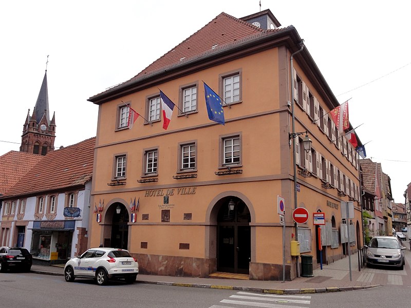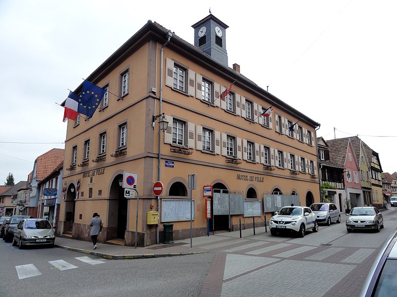 La mairie de Pfaffenhoffen, ancien hôtel de ville situé dans le Bas‑Rhin, a été construite en 1837 sur l'emplacement de l'ancienne maison commune dite Laube. Un métrage de réception de 1838 porte sur l'adjonction d'un deuxième étage, destiné à accueillir deux salles de classe pour les élèves protestants. Le rez‑de‑chaussée comprenait une halle et un corps de garde, tandis que les services municipaux étaient installés au premier étage. Sur l'élévation donnant sur la rue du Marché ont été encastrées des dalles des XVIe et XIXe siècles indiquant le prix des denrées en 1563, 1564, 1814 et 1817. L'édifice est inscrit au titre des monuments historiques depuis 1935. Depuis le 1er janvier 2016, il sert de mairie déléguée à la commune de Val de Moder.