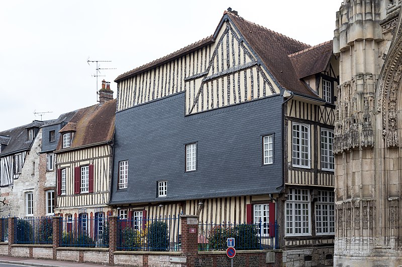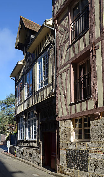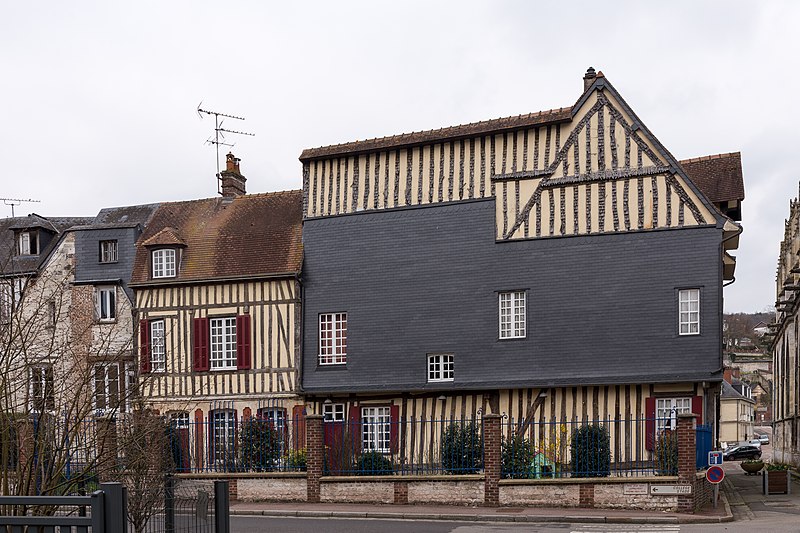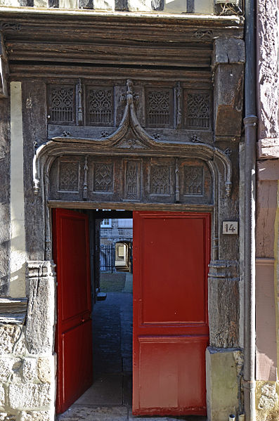 Le n°14 de la Grande‑Rue appartient à un ensemble de cinq maisons à pans de bois regroupées aux adresses 12, 12bis et 14. Séparés par deux cours étroites, ces bâtiments datent de la fin du Moyen Âge et ont été remaniés aux XVIIe et XVIIIe siècles.