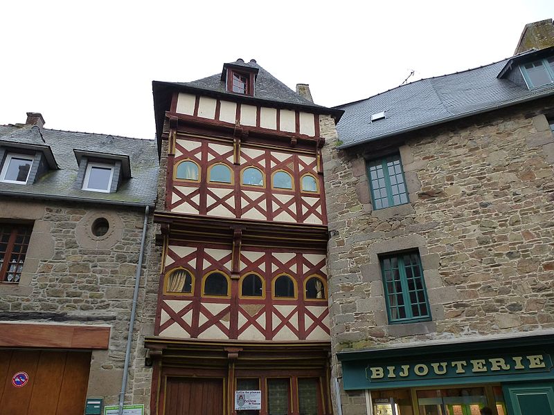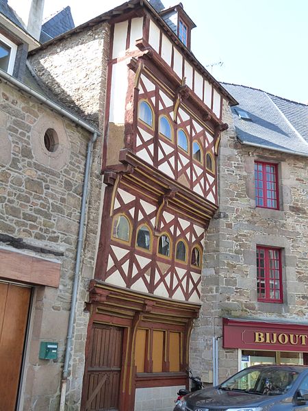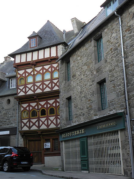 Maison à pans de bois de la fin du XVe siècle, elle conserve des dispositions intérieures caractéristiques des maisons dites à "pondalez". Le rez-de-chaussée abrite un espace commercial dont les poteaux en bois supportent les étages en encorbellement. L'espace central, formé d'un grand hall, était à l'origine couvert par une voûte lambrissée. Un mur de refend en pan de bois, s'étirant du premier au dernier niveau, clôt cet espace central. À l'angle, un escalier à vis en bois sculpté dessert l'ensemble des niveaux. La maison Saint-Pierre serait édifiée vers 1490 par un marchand toilier et figure parmi les premiers exemples de ce type, conçu pour la noblesse commerçante dans des villes portuaires du nord de la Bretagne. Ce caractère précoce se traduit par quelques maladresses d'exécution : le vaisselier et l'évier en pierre ménagés dans le mur sud sont partiellement masqués par l'escalier, et les chambres sur rue et sur cour ne sont pas exactement au même niveau. Dans la seconde moitié du XVIIe siècle, les galeries appelées pondalez qui reliaient ces chambres sont supprimées et un escalier secondaire en vis est édifié à l'arrière pour y accéder. Au XIXe siècle, la maison subit de nombreux remaniements : modification du plan de toiture avec disparition du pignon droit sur rue au profit d'une croupe, enduit appliqué sur la façade en pan de bois, percement de grandes baies aux étages, création d'une devanture au rez-de-chaussée et division de l'espace intérieur. Inscrite en 1964 à l'Inventaire supplémentaire des monuments historiques pour ses façades et toitures, la protection est étendue aux intérieurs en 2007 après la découverte de son appartenance au groupe des maisons à pondalez. À partir de 2007, l'espace central est restitué et l'escalier ainsi que les cloisons intérieures en pan de bois et torchis sont restaurés ; la façade sur rue est recomposée à partir d'éléments d'origine selon un état supposé de la fin du XVe siècle. Une étude dendrochronologique réalisée en 2023 indique un abattage des arbres durant la première moitié du XVe siècle ; la poutre centrale du plancher du premier étage est précisément attribuée à l'automne-hiver 1551-1552, tandis qu'une phase de reprise est marquée par des bois datés du printemps 1649, en particulier au second étage et dans les combles.