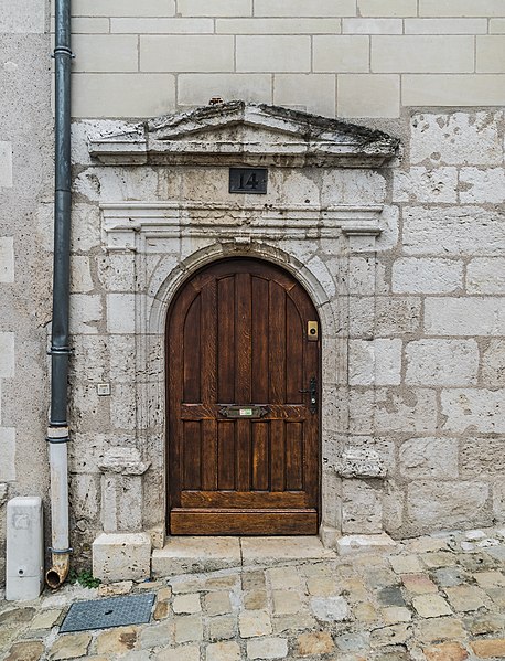 La façade sur rue présente, au rez-de-chaussée, deux fenêtres et une porte en plein cintre encadrée de pilastres et surmontée d'un fronton triangulaire. Au premier étage, une grande baie est entourée de pilastres aux chapiteaux sculptés. L'intérieur abrite un escalier à vis de Saint-Gilles en bois. L'ensemble de la construction, la porte d'entrée et les baies cintrées du premier étage datent du milieu du XVIe siècle ; les fenêtres du rez-de-chaussée ont été reprises au XVIIIe siècle et les baies du premier étage ont été dénaturées au quatrième quart du XXe siècle.