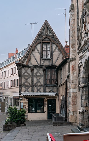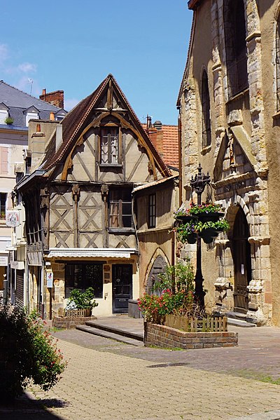 La maison Leboix se situe au 2 rue Porte-Saint-Pierre à Montluçon (Allier, Auvergne-Rhône-Alpes, France). Elle est une habitation de marchands et d’artisans, proche de l’église Saint-Pierre, qui appartenait à Perrinet Leboix, cordonnier, à la fin du XVe siècle. Perrinet Leboix détenait également un ban pour la vente sur la place du marché au blé (place François-Maugenest), voisine du marché des cuirs et des souliers. Le bâtiment date de la fin du XVe siècle et du début du XVIe siècle ; il présente une ossature en pans de bois et une façade sculptée. Au-dessus du rez-de-chaussée s’élèvent deux étages en léger encorbellement. La sablière moulurée, soulignée d’un cordon saillant, sépare le rez-de-chaussée du premier étage, lequel est organisé en six panneaux : trois panneaux supérieurs de hauteur double et trois panneaux inférieurs séparés par une entretoise horizontale qui sert d’appui à la fenêtre ouverte au centre. Les panneaux inférieurs comportent une ossature en croix de saint-André ; de chaque côté de la fenêtre, les panneaux supérieurs sont formés par deux croix de saint-André superposées. Les poteaux d’angle sont ornés de petits pilastres cubiques, terminés en haut et en bas par des moulures prismatiques et dotés, à mi-hauteur, de pinacles aigus à crochets. Ils sont surmontés de dés cubiques dont les moulures prismatiques saillantes forment des culots qui reçoivent la sablière de l’étage supérieur en encorbellement. Ces moulures, composées de deux listels séparés par une gorge, dessinent au-dessus de la fenêtre et des panneaux des linteaux arrondis à leurs extrémités. Le second étage reprend le même décor et la même disposition que le premier. La maison est partiellement inscrite au titre des monuments historiques par arrêté du 14 avril 1930 ; les façades sur rue et les toitures sont protégées.