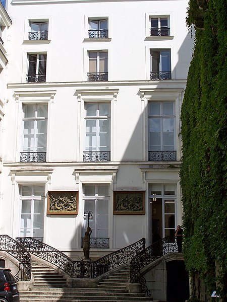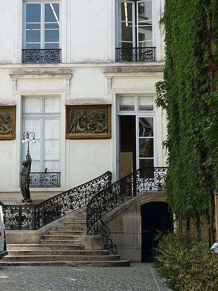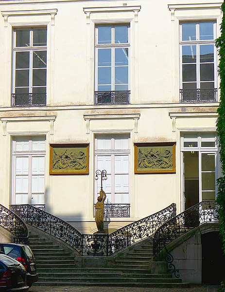 Les bas-reliefs de la façade et la rampe d'escalier en fer forgé : inscription par arrêté du 30 mai 1928
