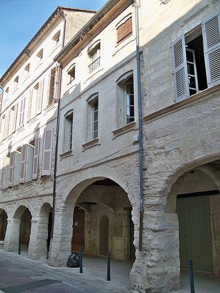 Maison à arcades Place de l'Église à Villeneuve-lès-Avignon dans le Gard