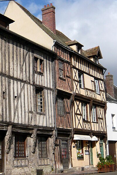 À l'origine, le rez-de-chaussée devait comporter un magasin avec étal. Toutes les sablières en bois sont sculptées. Le remplissage en briques rouges est disposé à plat, en croix ou en arêtes de poisson.